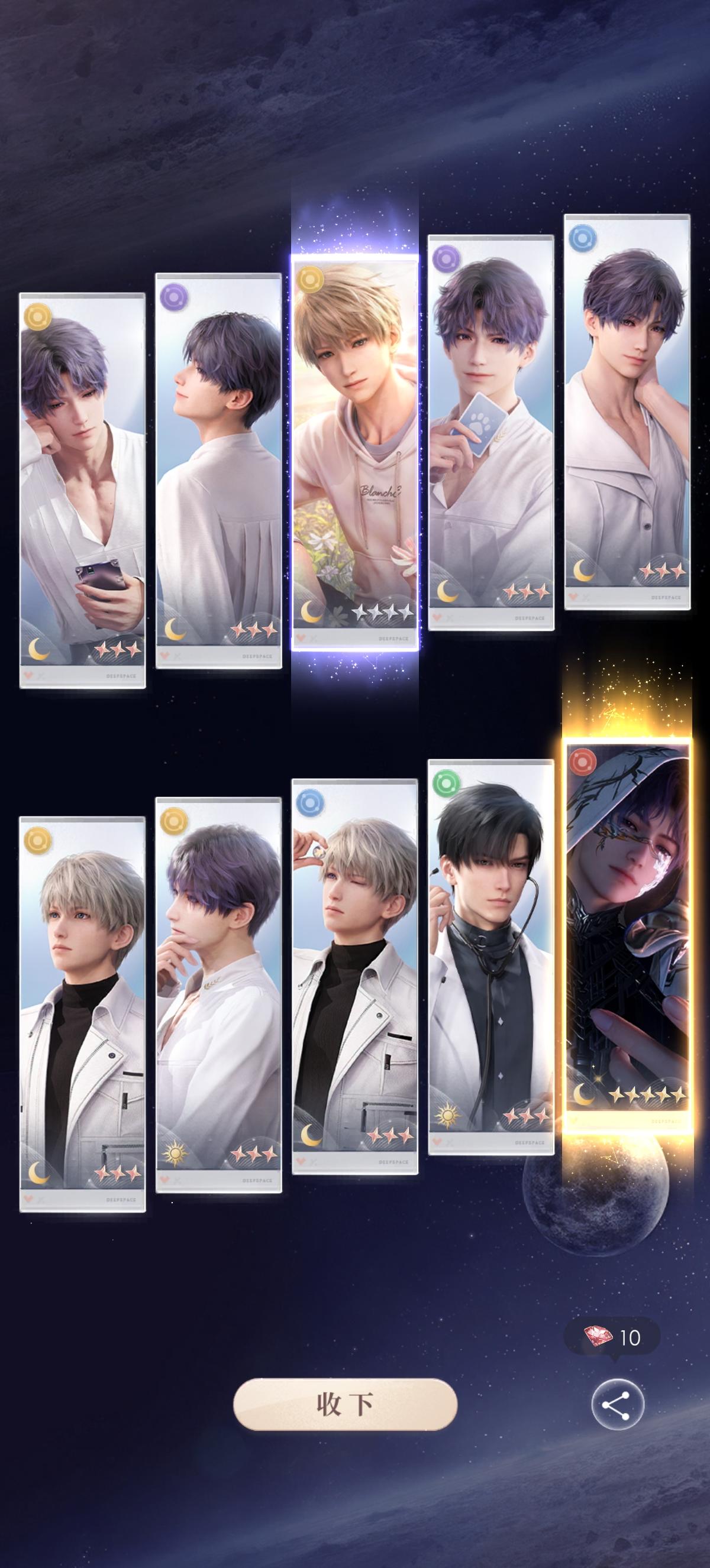 #恋与深空 为什么没有抽到我主推,却抽到我的副推?第一发是十抽到两张五星的,一张是新出的活动,第二个也是十抽,但是重复的比较多