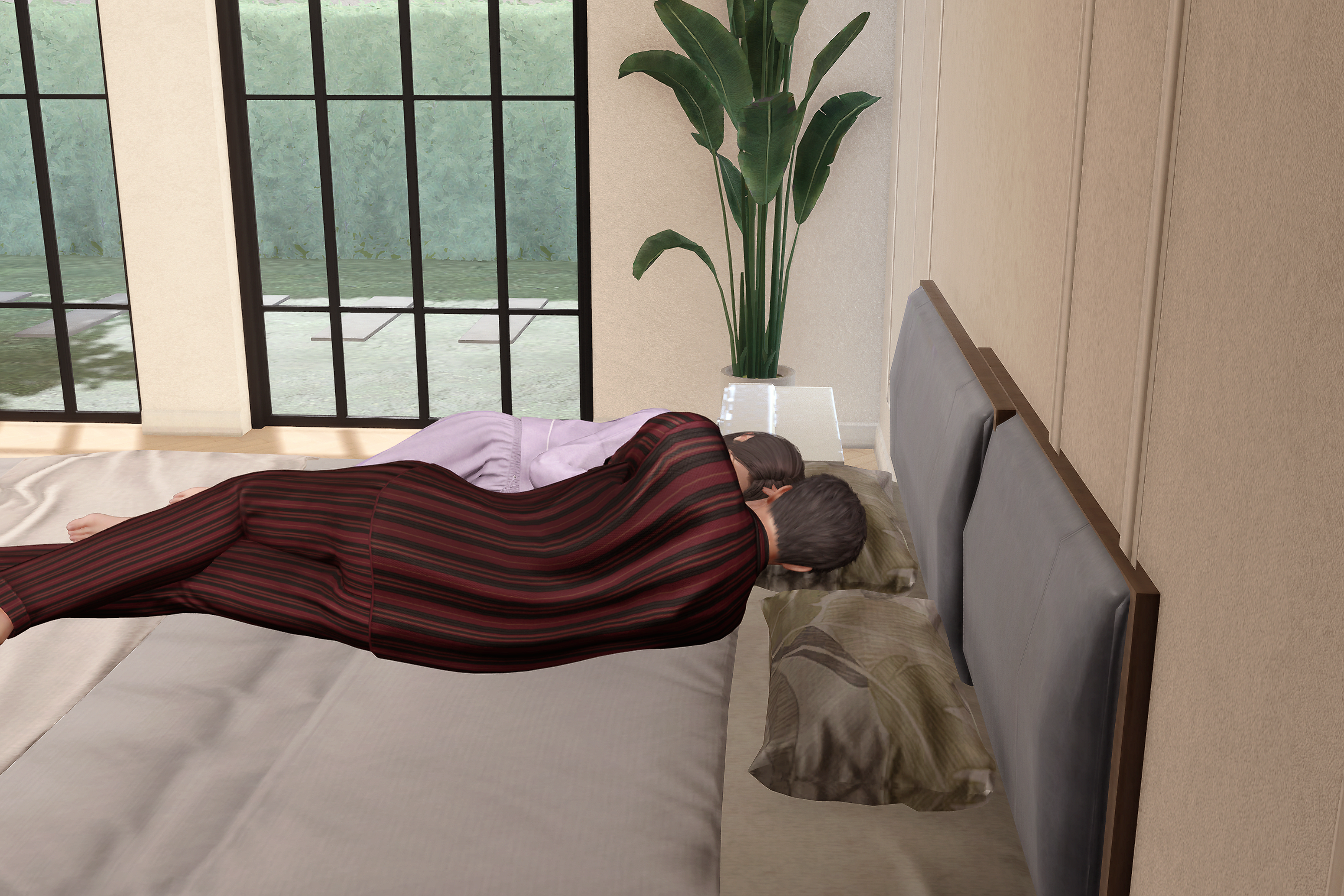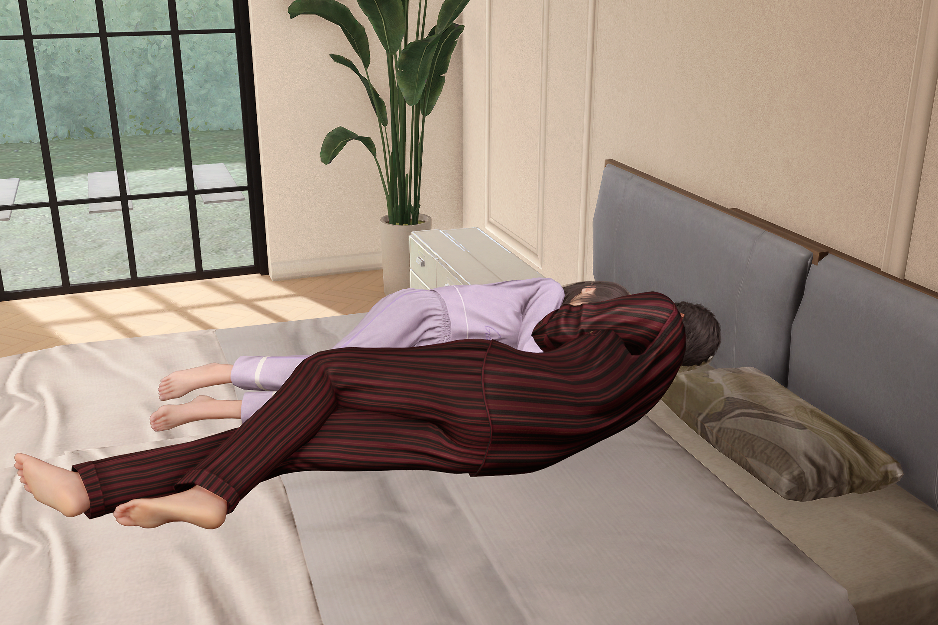 叠好两张床侧躺好,放大视角把自己的建模卡出视野,伪第一视角看老公