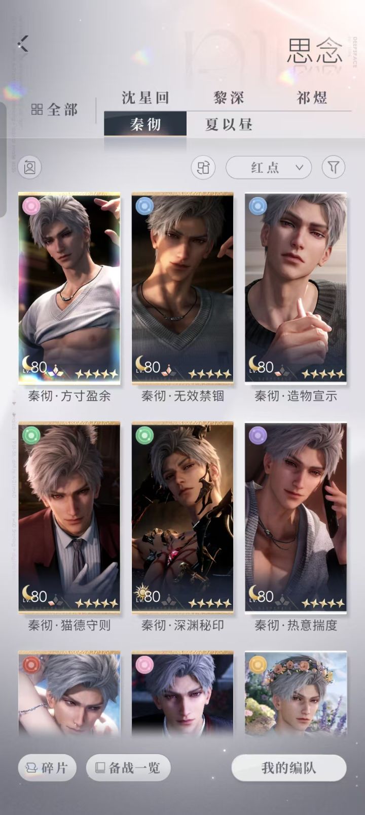 这次我大号没这么欧了。110抽。我的小号好像比较欧,就是90抽拿下来星星。。我觉得这次的池子的感觉还凑合。上一次池子200抽拿下来的星星。200抽,那时候的200抽里头还歪了三个秦彻的常驻卡。。我根本不推彻。。我推星和鱼和哥。待一会继续抽到哥哥的卡的古风。。我觉得这5位男主的古风卡里