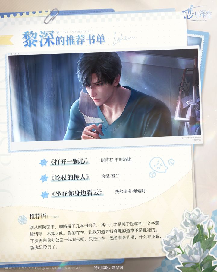 连着两天一天上线4次#恋与深空 次次都看见星。究竟是怎么了。是其他二位不想见我吗。还是跟星太有缘分了??抽卡出星的概率也好高。是不是设定星的概率就是要高一些啊新人不懂。