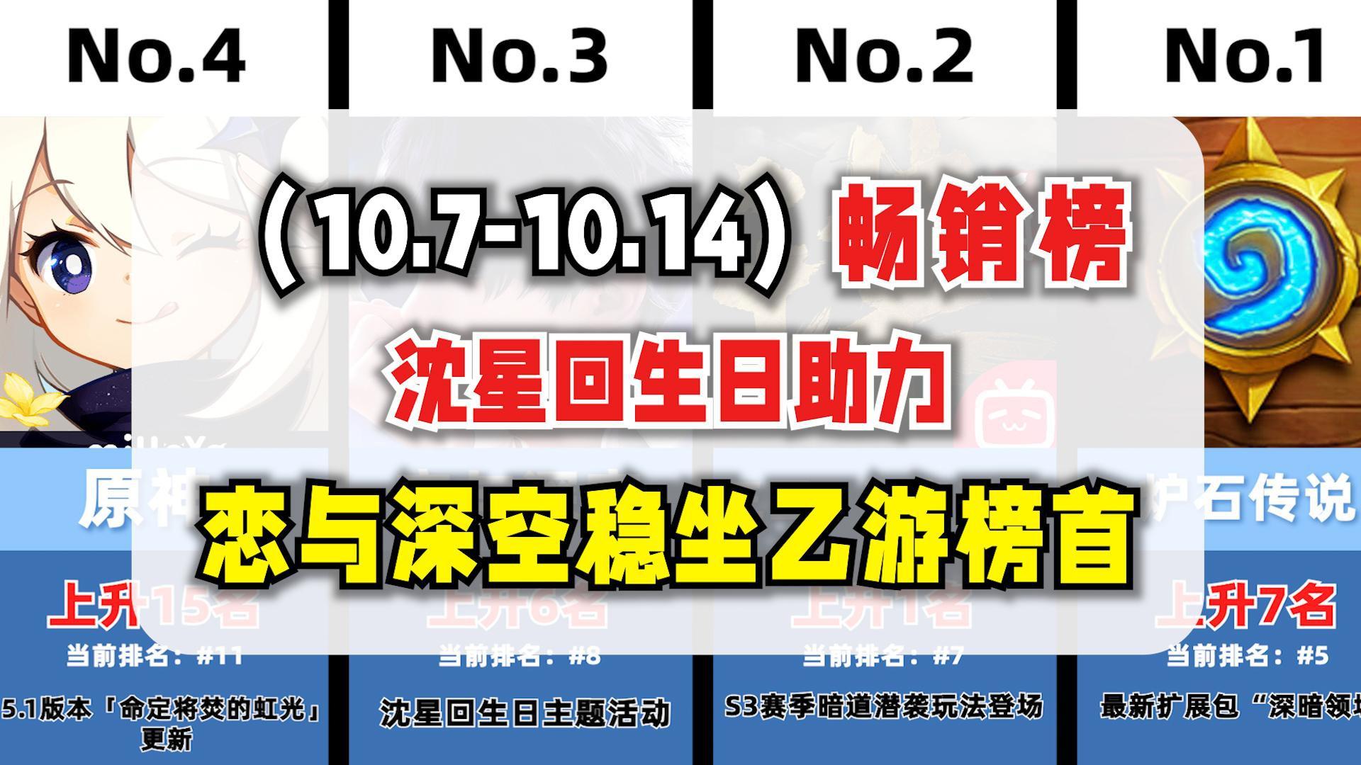 恋与深空稳坐乙女游戏榜首,10.7-10.14国产手游畅销榜