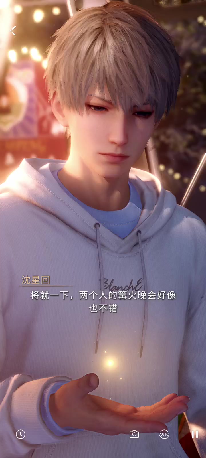 致可爱的沈星回: 还记得我们的初遇吗?第一次见面我们就配合打败了流浪体,所以在知道搭档是你是我就知道这是我们的缘,也是命中注定的劫。 想起那次你一边说着冒犯一边抓着我的手放在胸膛上,幸好流浪体掩盖了我内心的波涛汹涌,我也是个懵懂的女孩。 真正意识到喜欢你是在我脚扭时你来来回回了好几次,你担心我,我很开心呀星回。原来我不是不喜欢嘴硬的人,只是因为他们都不是你。 还有篝火晚会那天,当你的Evo