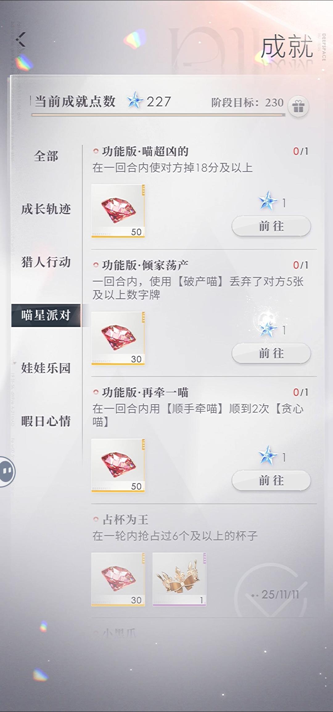 啊啊终于完成了这个成就我还想的跟黎深才能完成这成就没想到跟祁煜就完成了哇哇哇\(^▽^)/!还多完成了一项成就(。・ω・。)ノ♡ 还剩三个成就了就都完成了开心(✪▽✪)我不得分也没关系全让鱼宝宝赢(づ ̄ ³ ̄)づ鱼宝宝太棒了(ɔˆ ³(ˆ⌣ˆc)
