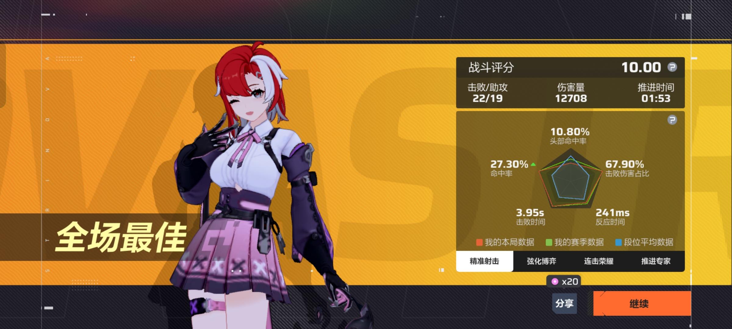 游戏是个好游戏,本身可玩性很高,运营也很有意思,福利也不错。扣一星扣在匹配机制上面。匹配的局有三中,全人机(除了你都是人机),三带二(两边都是三个真人加俩人机),全真人。我平时打匹配如果是极限推进基本都是全人机局,又不加分打起来真的没意思。排位大多数对局都是三带二,但是人机之间亦有差距,一旦人机队友拿了魔术师或者长枪(心夏香奈美),对面人机选短枪,这把就可以准备四打五甚至三打五了。我不是不能接受人机,但有些时候输赢完全取决于人机队友玩什么就感觉很扯。此外,人机还分为低等人机和觉醒人机,给你们看一把昨天我三带二被长枪人机坑输两把后打的全人机局(全人机局是有征兆的,开局的时候不显示战况预测)。我的队友四个低等人机,只知道站在那里不动挨打。对面全是觉醒人机,走位转弯走得比真人还强,打到第三阶段人机队友发力了被堵着门杀,超弦推进对面肉得离谱我一梭子才能打死一个。打到最后只感觉燃尽了想卸游戏。这种匹配机制能不能改一改啊