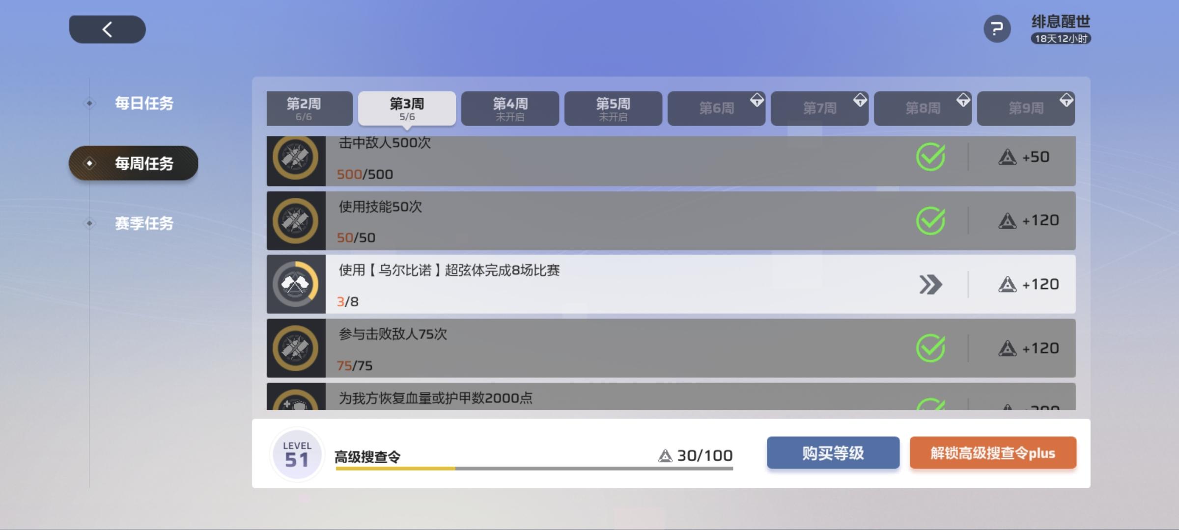 通行证任务还有四周没解锁啊,赛季怎么就剩18天了