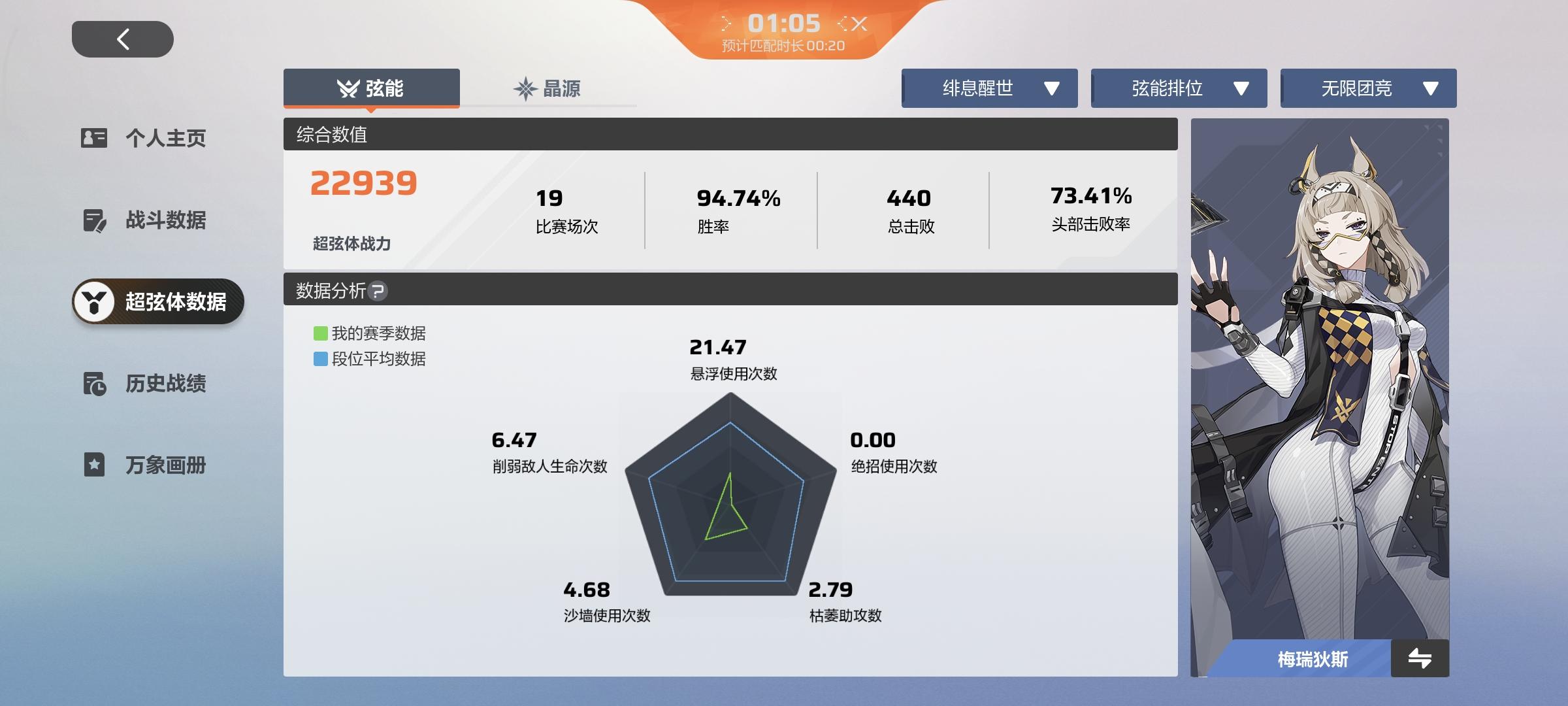 我在高端局是个mmr,这里截的是打到弦233的,现在两个号都奇(真难上mmr投降了喵,居然奇43就有816排名,怪不得这么卷,已经打不动了)剩下是截的撞榜一榜二榜三的,都赢了喵