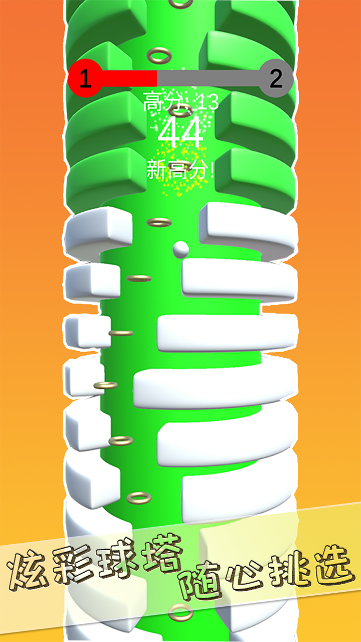 简单而又有趣的游戏往往是打发时间的利器!现在,这类型的游戏又来啦!在高高的塔上,有一个在不断下落的小球,玩家需要旋转高塔来让小球躲避各种障碍物,同时穿过圆环来获得分数。当小球顺利到达底端时,你就获胜啦!