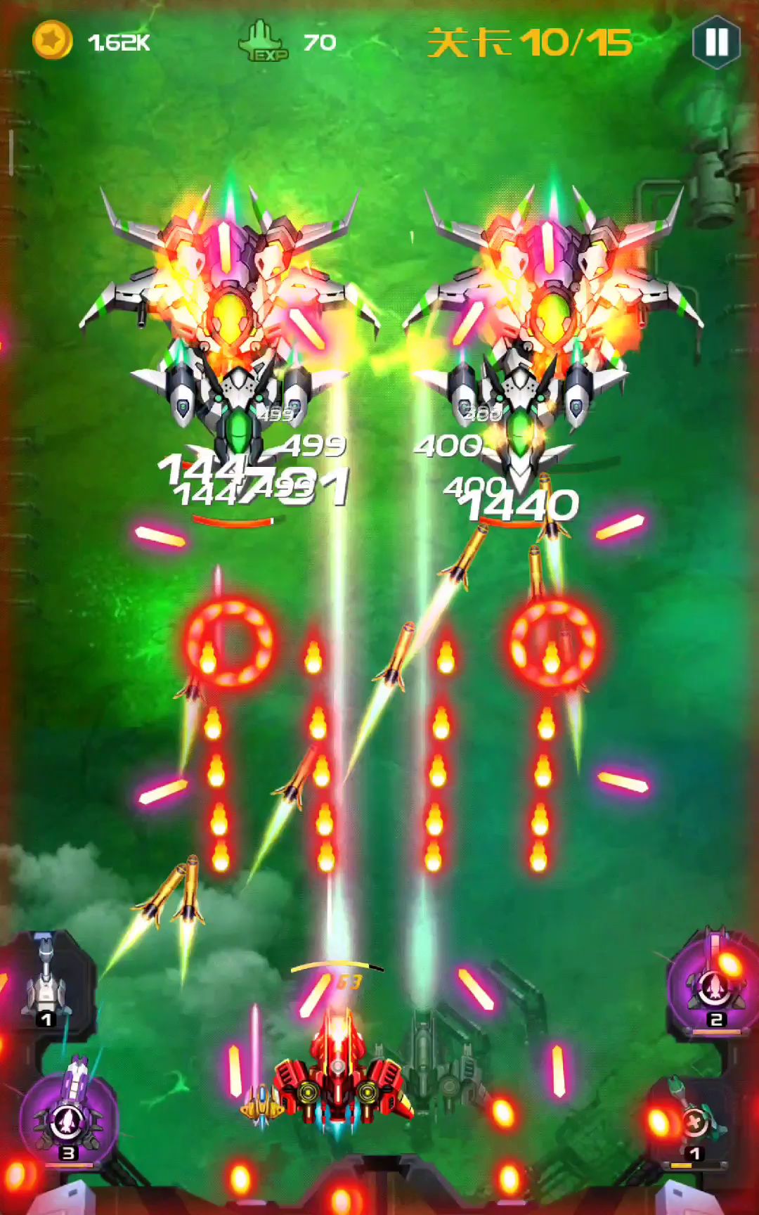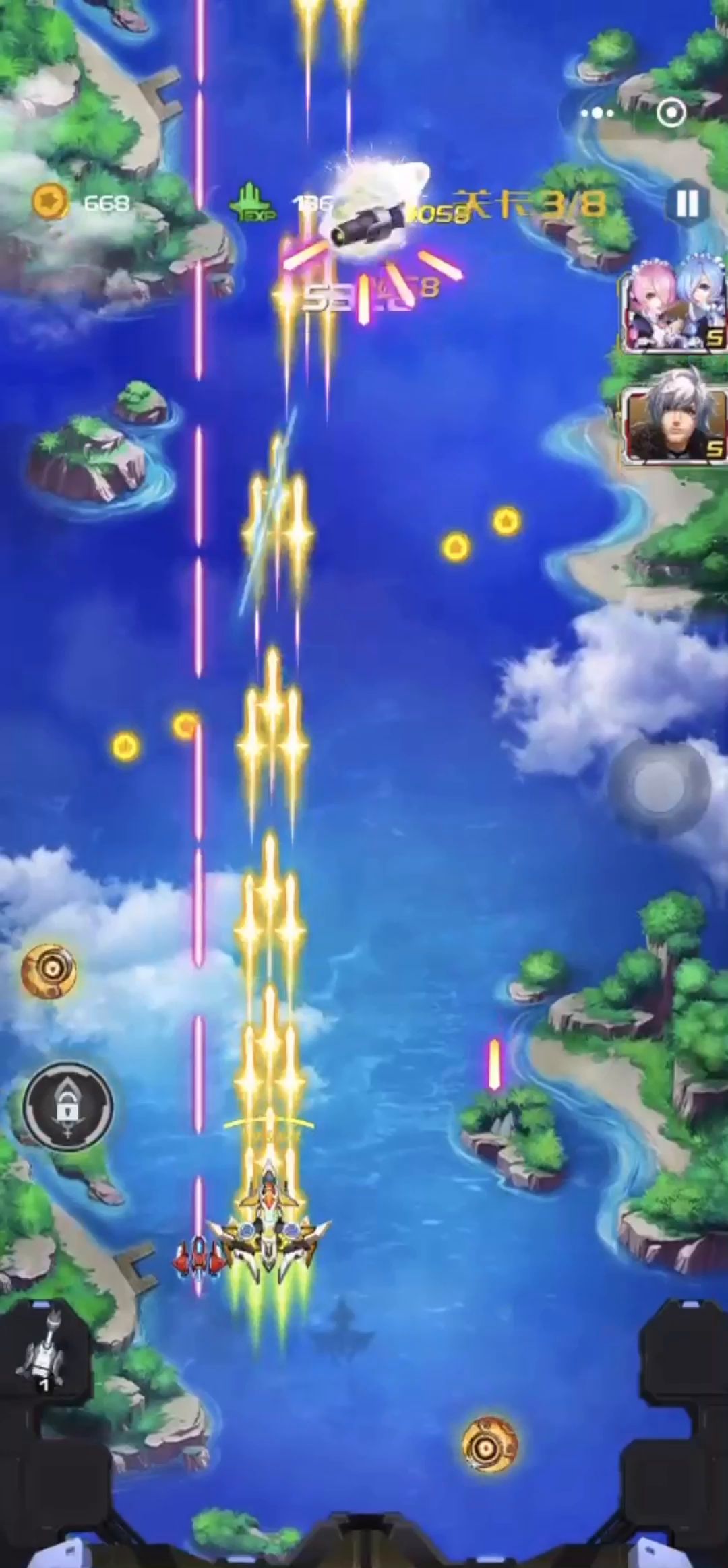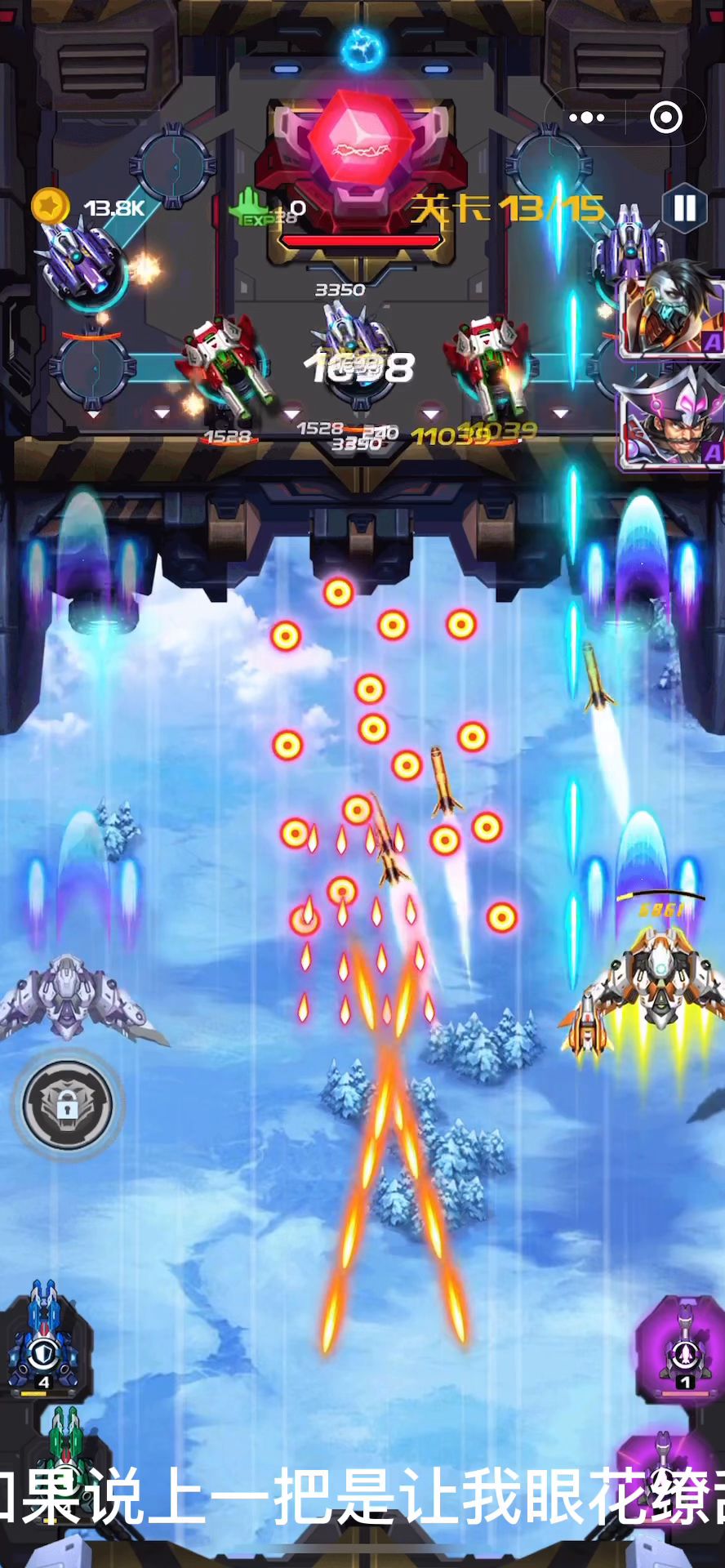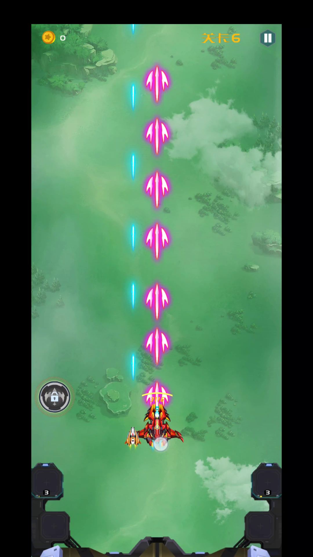 这一章比第五章简单,我也没升级战机。但是过的很轻松。敌方子弹算很少的,之前第五章子弹很多,这局还选择了冰弹,但是可以全部选择加攻击的,塔也是,用不上治疗塔