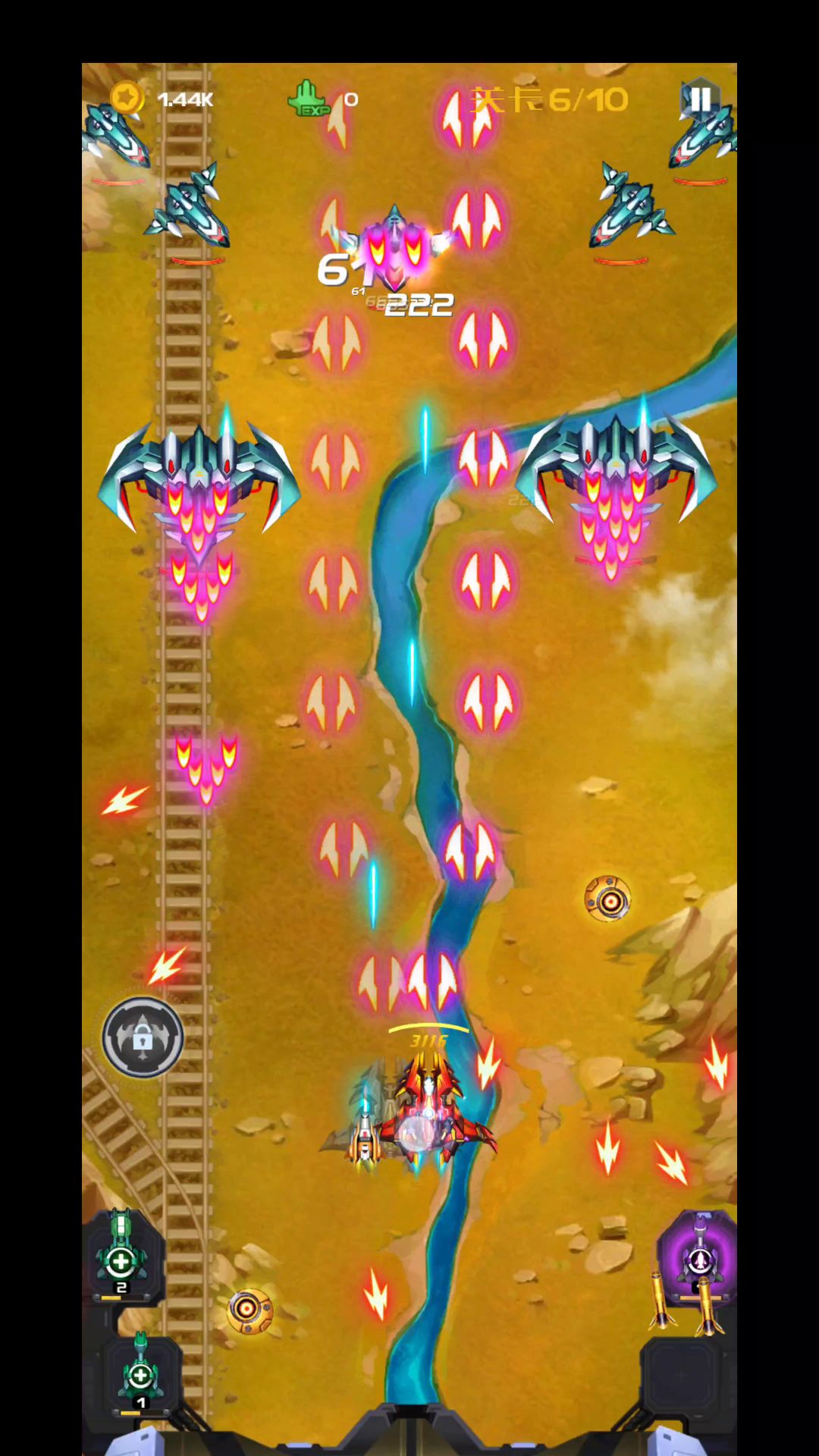 弹幕游戏从远古九十年代街机时代就已经盛行,战机这类型的游戏,也是许多老玩家的童年回忆了,战机代号666这款游戏还是非常经典的。 让你操作着宇宙战机在高空之中去进行战斗,高空之中会出现许多的危险需要你去进行躲藏,通过自己强大的作战能力来完成每次的挑战,随时注意好自己的血量来进行补充,升级强大的炮弹和战机造型来进行使用,让战斗的时候变得更加的酷炫! 虽然你只需控制方向键即可,全程自动射击能帮你省下很多的麻烦,击杀敌机后就会获得少量的能量值,积累起来在关键时刻使用,小心那些迎面而来的子弹,一旦被击中就要损失部分血量。但是但后面的换卡其实还是很难的! 大家根据游戏中的新手教程快速掌握各种飞行技巧能够让你快速到达终点。超多的地图等着你来挑战,你需要提升自己的速度在规定时间完成,熟练掌握更加高难度的飞行技巧,快速的完成任务。 附上第六章的惨败视频哈哈哈