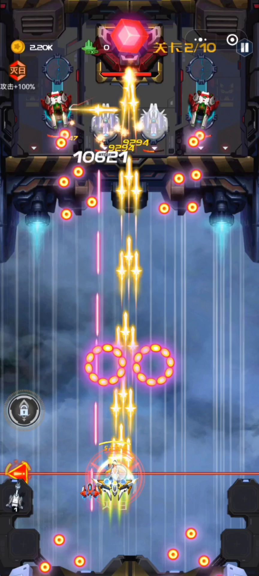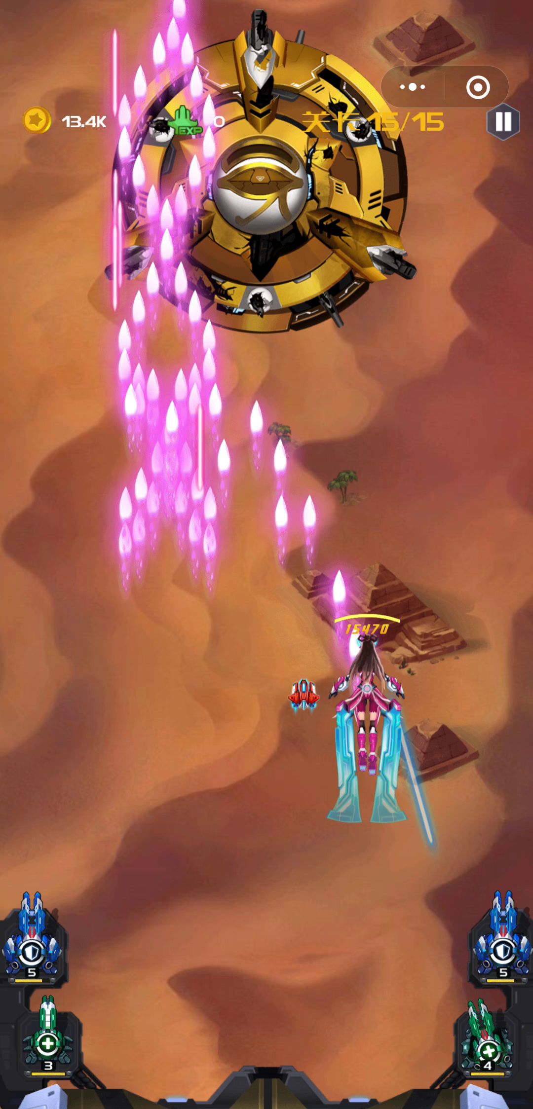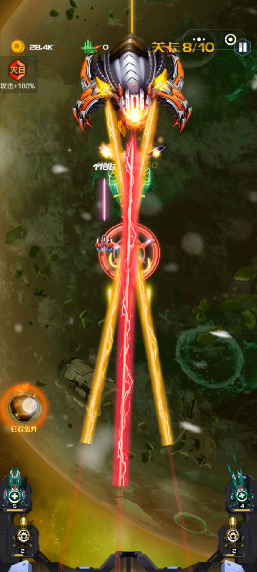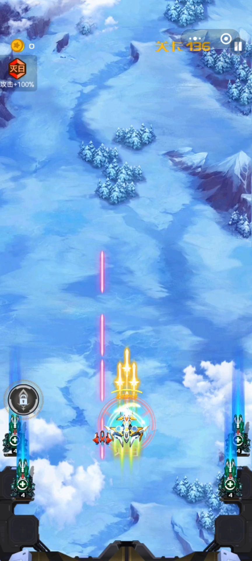 战机是星渊利刃,总是感觉这个战机玩起来挺有安全感的,灭日套+护盾+医疗,选择的技能也是血量+攻击+攻速,并且变身后还换成了3个医疗炮塔,这回血量简直了~~~