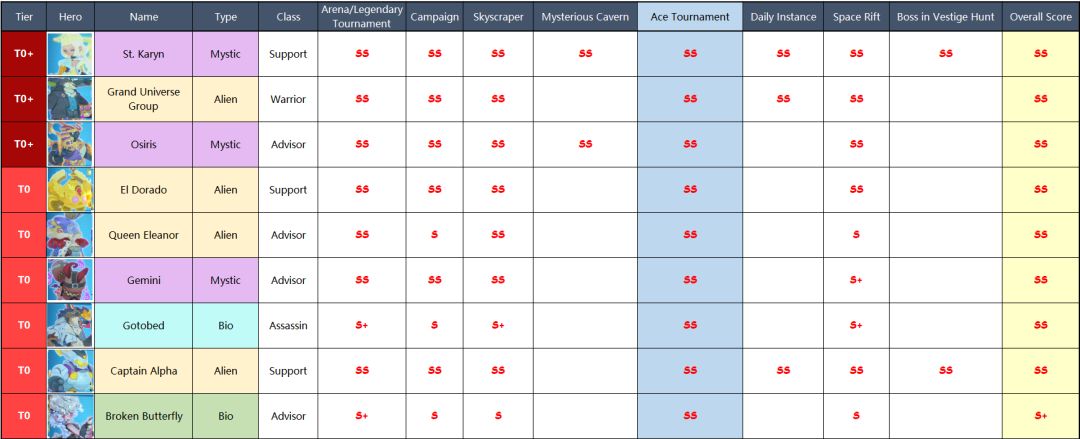 现在这个版本强势英雄是蝴蝶、狗、双子、猫狗、壶、圣卡琳这些英雄,星空祝福也还可以,露娜法老这套炸弹依然能用。 然后宝藏的重要性也越来越高了,尤其是像猫狗带镰刀,双子带专属开共鸣这种,一个沉默、一个混乱,不让你放技能也就算了伤害还挺高。遇到了恼火呀 新限定的话再观察观察,毕竟是限定,我想大海怪的售后肯定是会跟的上的,看看后边表现如何。