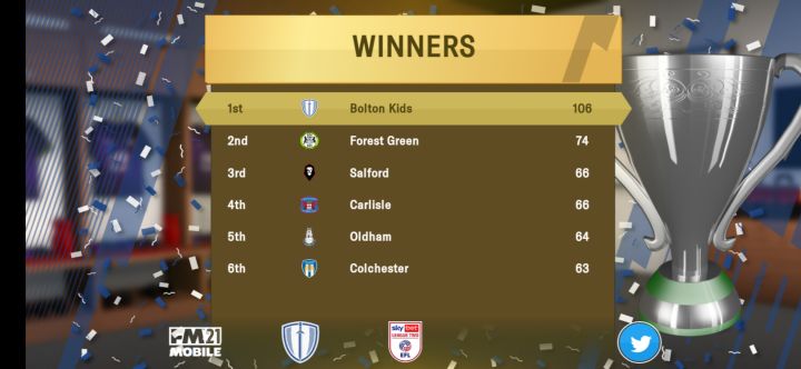 My Club模式,搞了一堆不到20岁的小屁孩再加仨老大哥,一场不败提前夺冠。接下来的足总杯加油!