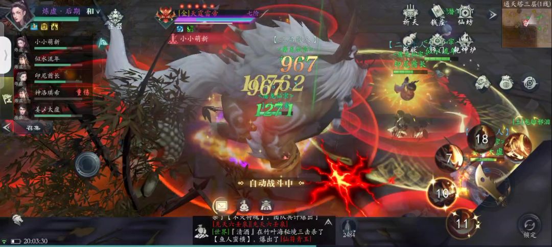 给还没炼虚的道友看看通天塔boos中技能最帅的天庭雷帝,打的时候记得把亮度调低,画质调低,不然小心他一个技能秒了你的手机[表情_斜眼笑]#宝藏游戏安利派对