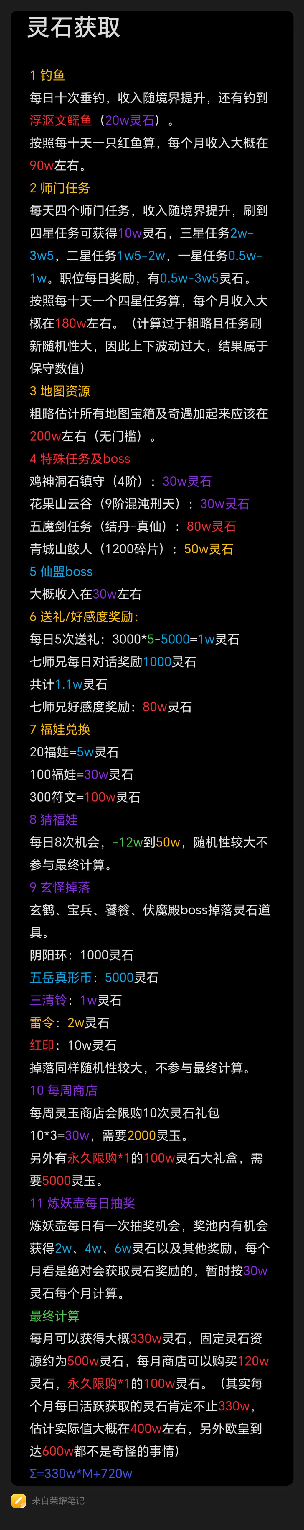 几个月之前算的,部分内容不够严谨不过大概相差不大,给各位道友参考一下。