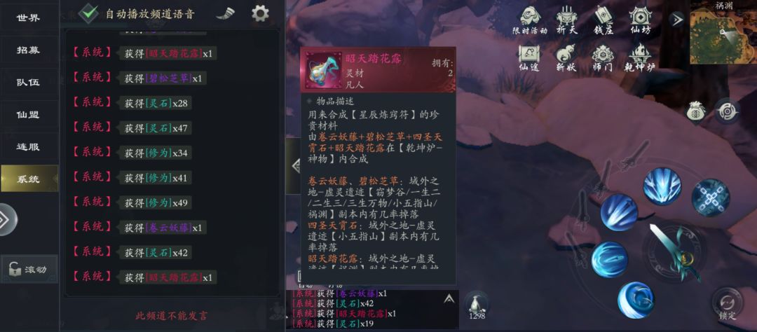 图上有个土地爷奇遇,我选的观看过去,给个幻仙石,图里第一个幻仙石是阵法蜘蛛箱子给的,运气不好要多开几次