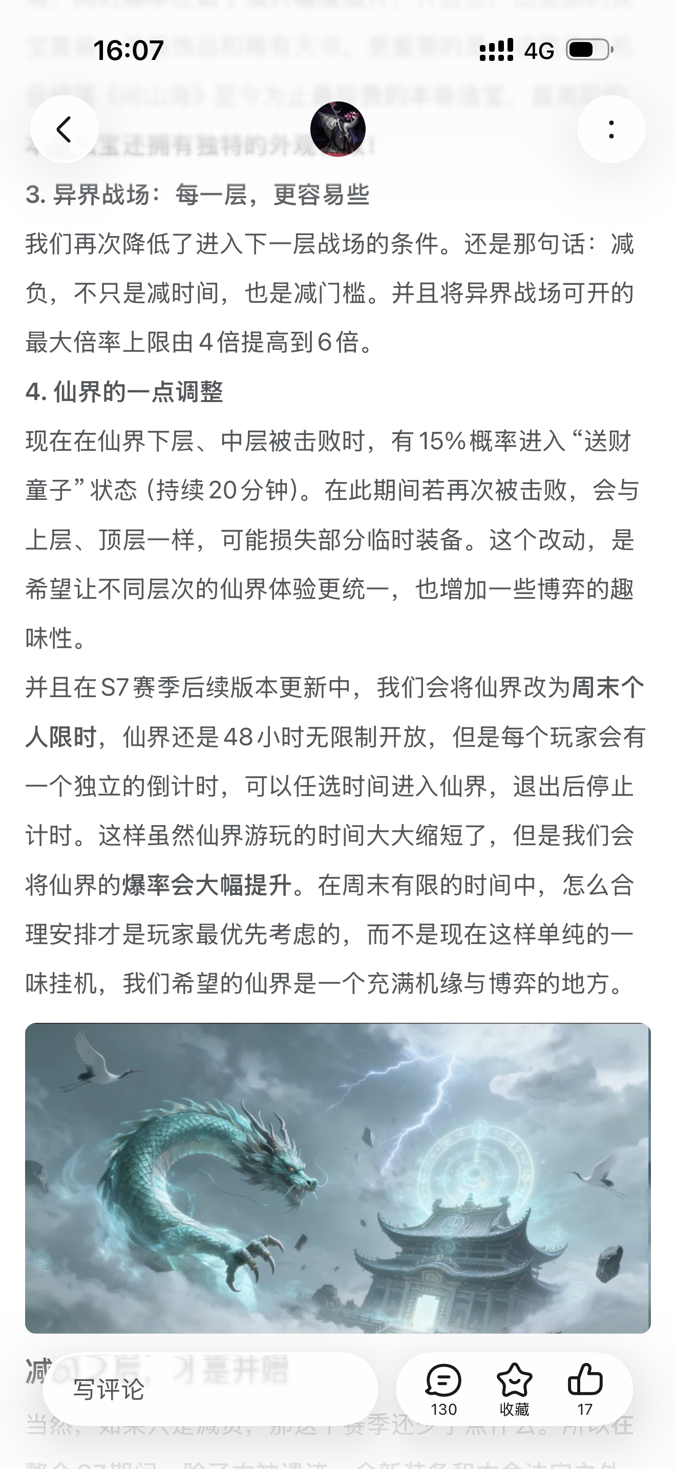 问山海这款游戏 大家都知道 游戏后期只剩肝了 这不是我们想看的结果 大家说后期玩法少 那我们在s7赛季会新加很多非氪金向的内容 这一点才是最重要的 但是都被大家忽视了 目前团队正在努力做新的内容 陆陆续续会不断实装 周末也会出现更多的内容和活动 而不是一个仙界就要占满48小时 我们不想看到大家的玩法就是上线开云机开脚本开按键辅助就是后台挂机了 s7赛季开始 游戏会不断添加新的内容和活动 我们更希望