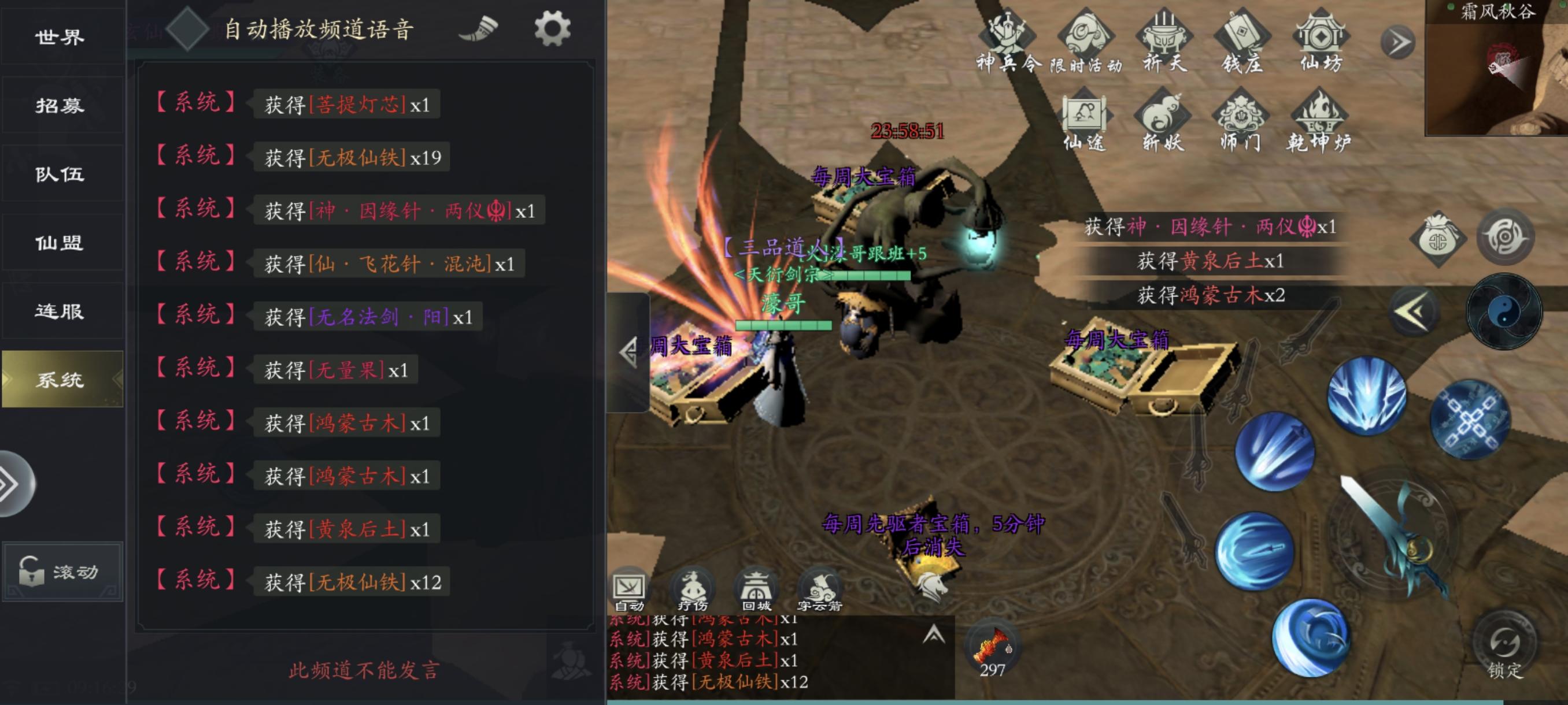 中途退了小半个月,人又不欧,也不想再氪,战力自然是跟不上了。仙界一开,打架更成了奢望。好在跨服里聊得好的道友,见到我多半会手下留情。至于其他区的——砍我也正常,仙界嘛,本来就是个竞技场,谁有义务让着你呢?周末在顶层紫霄宫蹲天道,还剩两分钟刷新,紧张得原地转圈。忽然一个大葫芦落下来——其他人都说见大葫芦都怕,我却安心得很。因为这个赛季服一共三个葫芦,两个在我们盟。每次在仙界遇见,我总会围着他们转