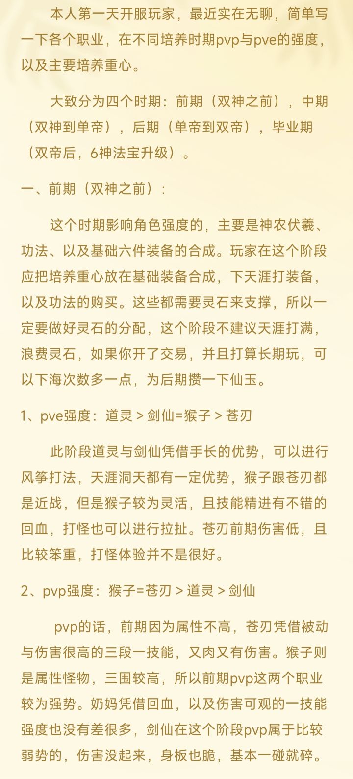 给准备入坑玩家的一些职业选择的建议