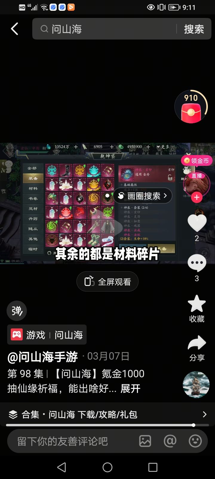 今日收获:1共工法环(重复)#浅评一下 #问山海 #问山海仙界 #问山海建议