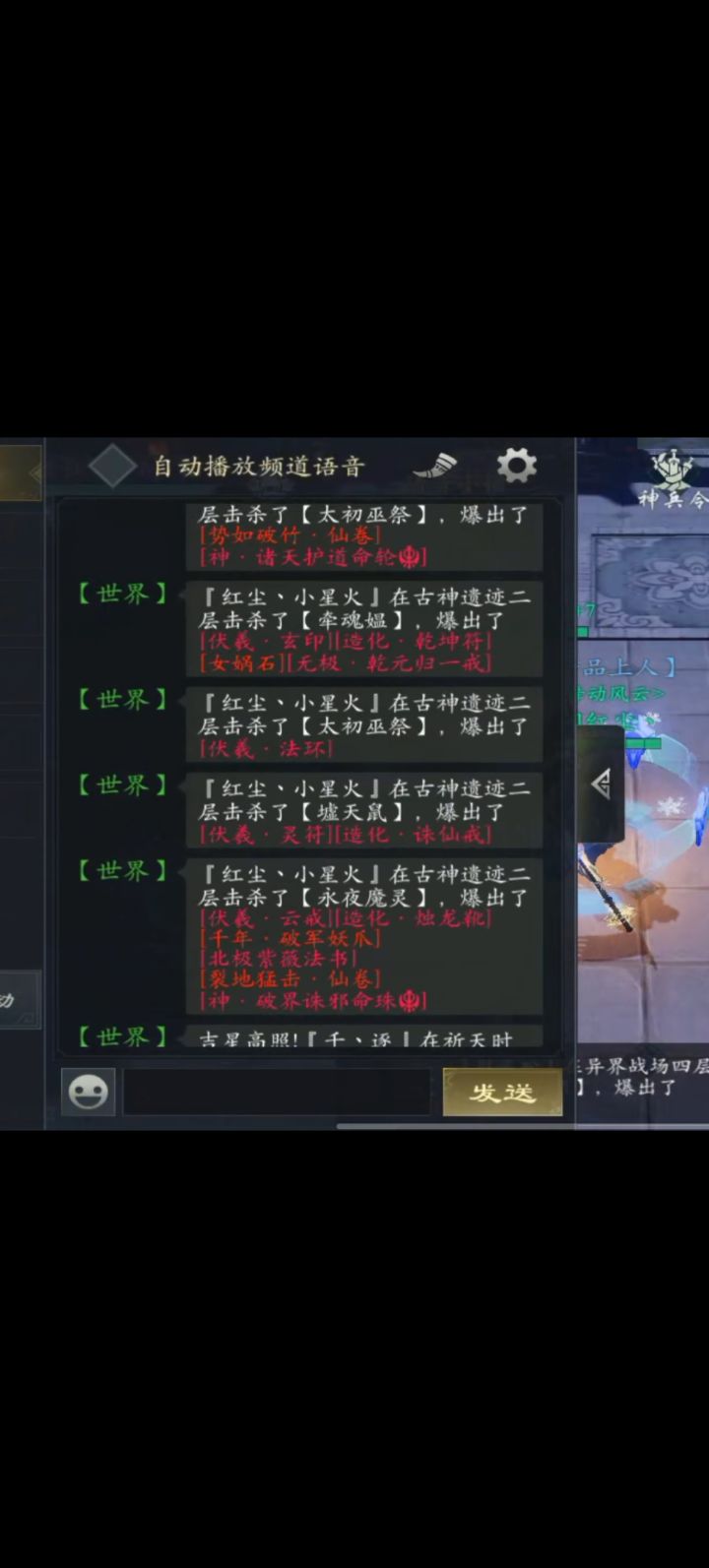 好无聊呀,天池连个神都不出,3把天池出2个圣分解一个,打了4个无量法相,前天3千仙玉卖了一个白虎法相,打古神那3个大怪打不过呀,那2个拿板斧的打的好疼呀,还好不回血,现在最高也就打打14阶怪,15阶扛不住,还差2件装备就全部真洪荒,具体多少猎妖防,或者多少防御可以打?