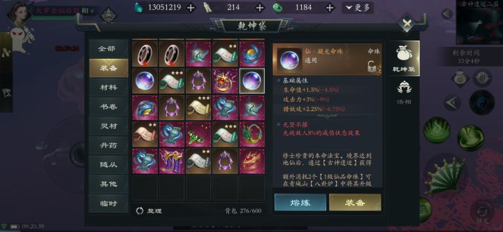 残卷很重要,所以单开一章。打架红色残卷,目的是堆基础攻击力,不过多说了。刷图:1.主流就是万仙阵法,五色神光青,五色神光黄。因为这三个伤害最高。目前版本,因为法则加持,建议无脑选万仙。至于青,黄,很费精力,还需要学会如何去看残卷怎么出。出现概率是这样的,青>红>黄>白 四色各有一个珠子出两仪,这里值得注意的是:黄和红原本的位置是相反的。2.搭配:建议九息服气木,万仙阵法,九息服气火,九
