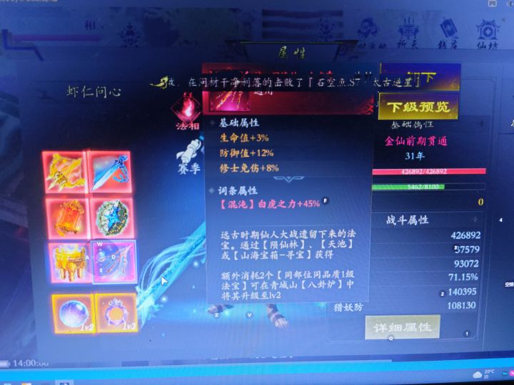 好无聊呀,天池连个神都不出,3把天池出2个圣分解一个,打了4个无量法相,前天3千仙玉卖了一个白虎法相,打古神那3个大怪打不过呀,那2个拿板斧的打的好疼呀,还好不回血,现在最高也就打打14阶怪,15阶扛不住,还差2件装备就全部真洪荒,具体多少猎妖防,或者多少防御可以打?