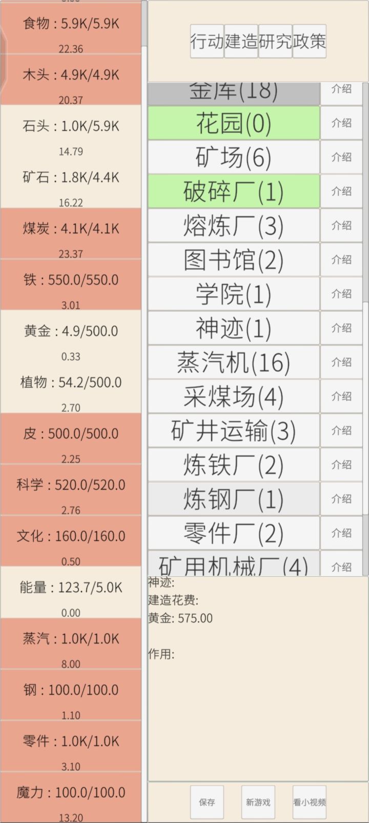 打到目前版本的极限了(石材厂和木材厂没升级是因为减食物生成,目前版本没有更多的生成食物的手段)作者敢不敢把坑填了