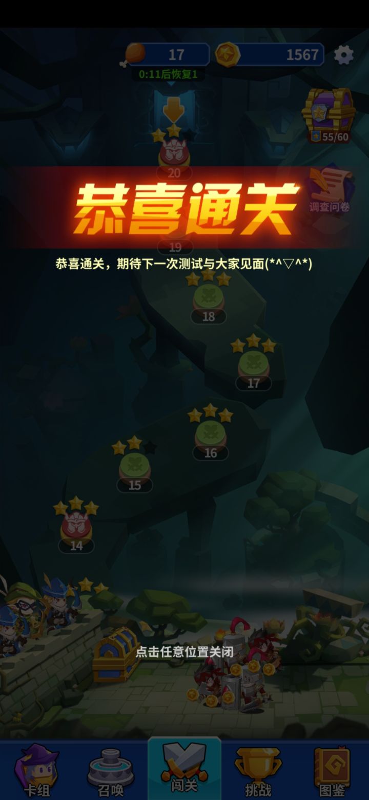 虽然我们只是一个简陋的demo版本,虽然咱们这游戏人气也不高(主要是没钱打广告,嘤嘤嘤),不过还是有不少的玩家朋友表示了对我们《铁壁军团》这个玩法的喜爱,非常感谢大家的支持~在这个moment,我们深深的感觉到,大家还是挺喜欢我们这款游戏,因为在开测仅仅几个小时之后,首个通关20关的玩家已经诞生啦!在此我们项目组不得不为这位朋友热烈鼓掌!这位ID为82的朋友在开测之后用时4小时40分就把我们这
