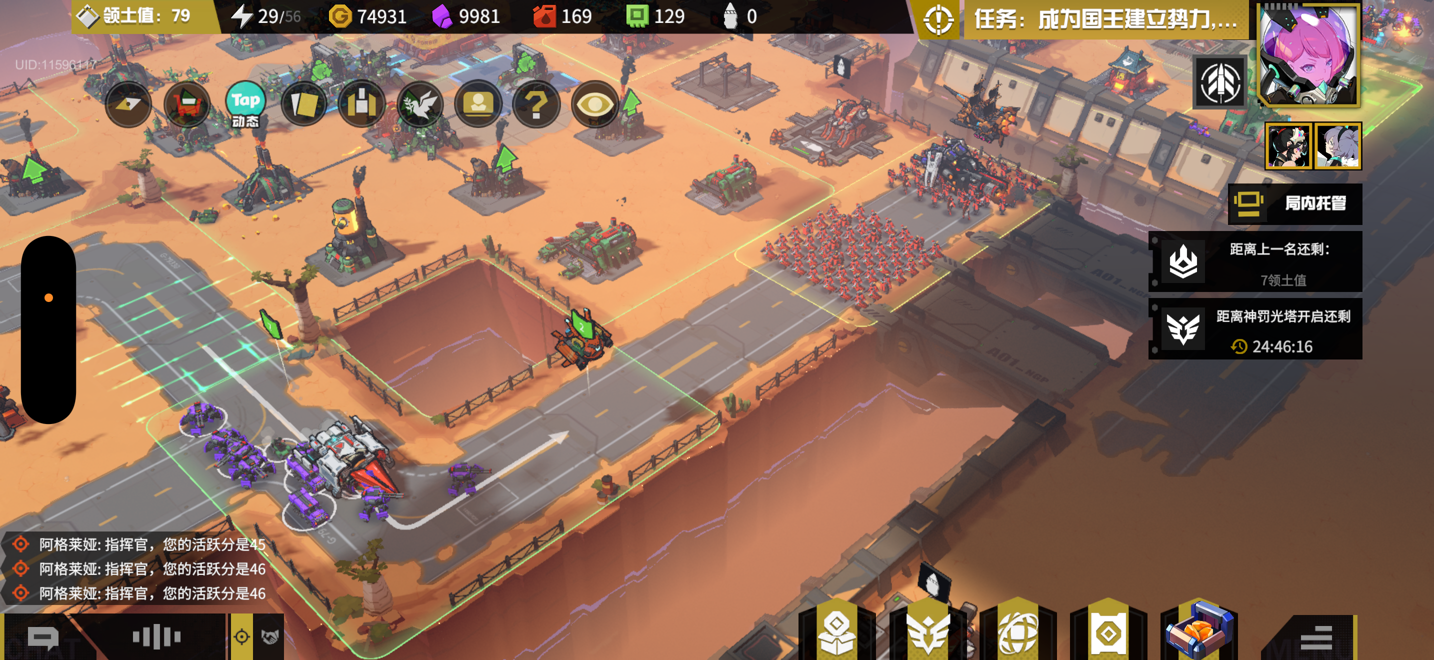 思和冥思的搭配,既给游戏增加了趣味性,又对玩家的发育能力和熟悉兵种核心冥思的程度提出更高的要求。 三种分类的载具和冥想花样繁多。白熊和黑鹰两个阵营各有千秋,白熊可以建造超级建筑要塞,黑鹰可以建造巨炮。空军、陆军,近距、远程,轻武、重武、超武各个兵种都有自己的的特色。通过兵种载具冥想之间的配合,进行发育、基建等方面获得优势,适合各种指挥官入坑,发扬自己的独特风格。怎样玩都很不错,玩法新颖有趣,和朋友一起玩更有意思。建议:新赛季游戏正式上线,欢迎新人。建议找大佬组队,或者多看攻略,防止被炸鱼。玩家比较友好,游戏内一般实行远交近攻。盟友大佬没事会教你一些技巧。就是还是比较菜,也希望来更多的玩家 起游玩。