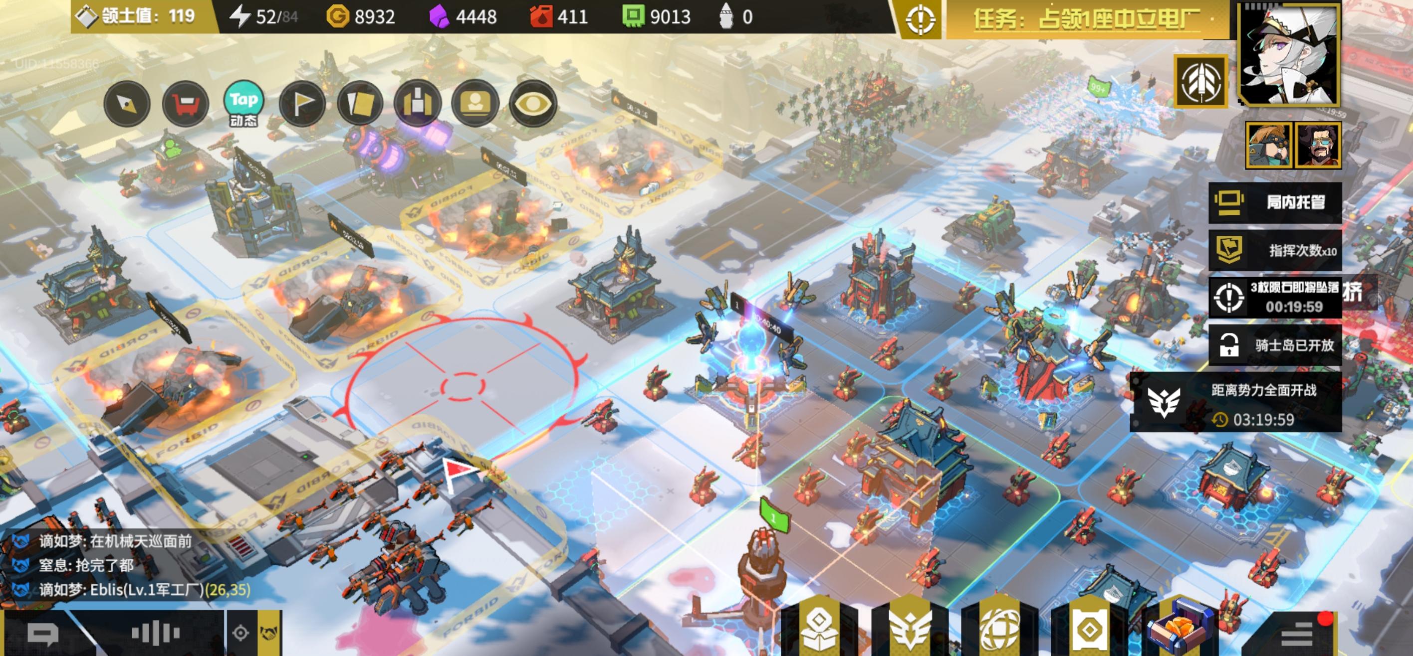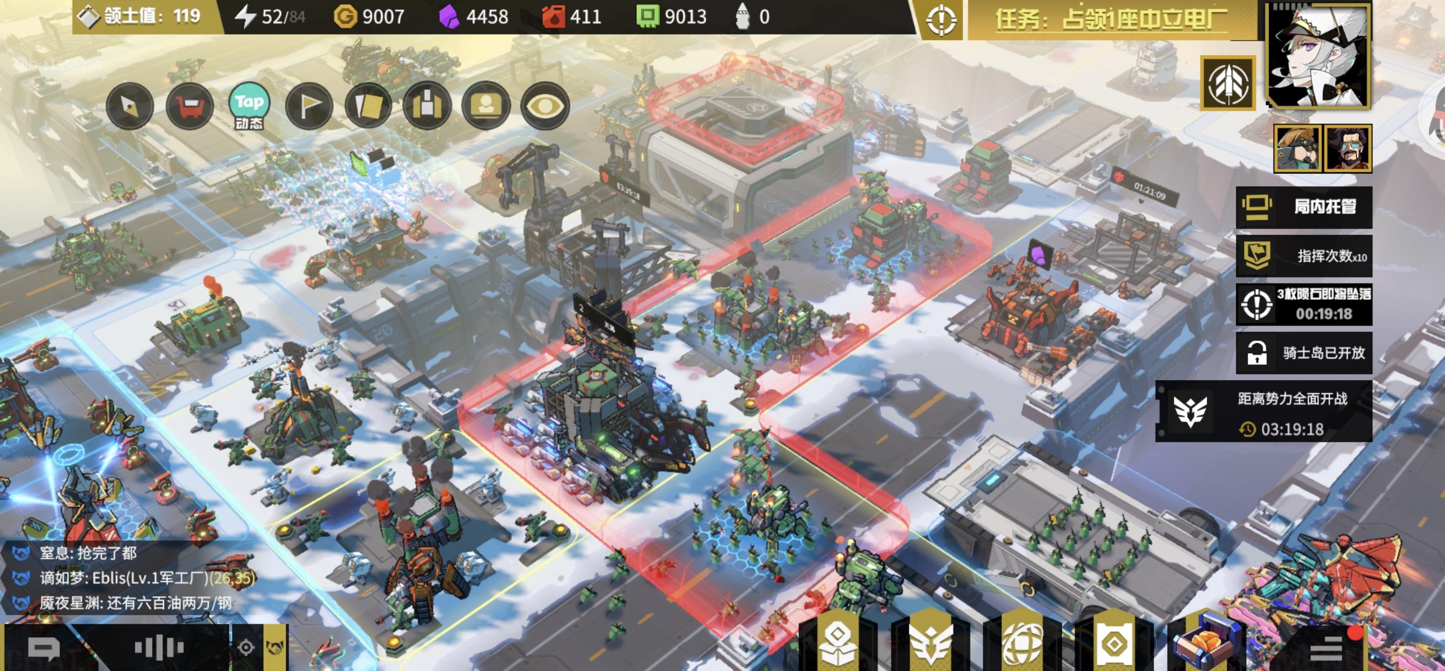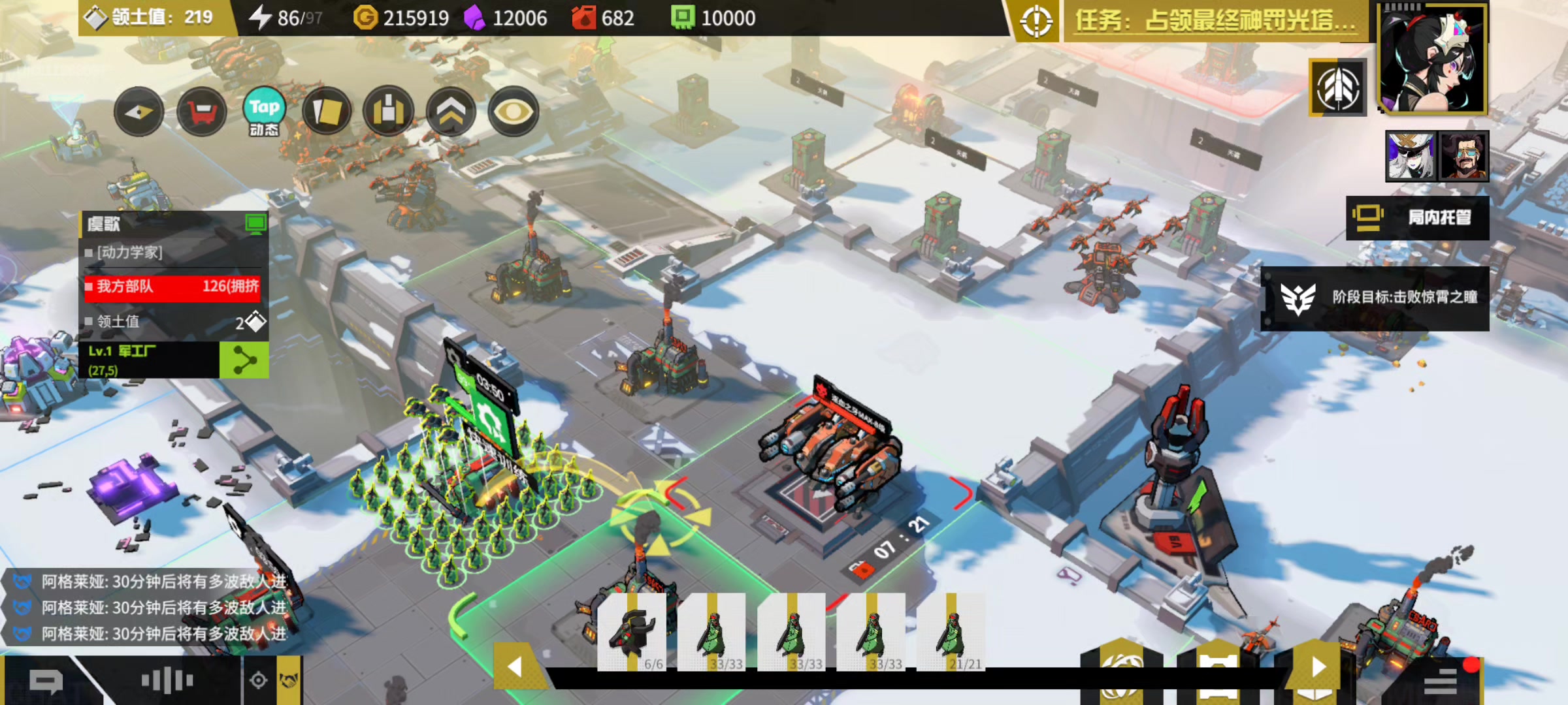 对面小发门口六根三级王权一个四级分基地基建防御做的足足的抢小发的时候也是很给力,我们一块地也没拿到。可是再勤奋的国王遇到了笨蛋队友外面只造了一层建筑,两个废墟没有消,当时前线正在打架,我坤溜过去 直接把小发里面的地全捡了。我当时就想着抢小发 结果没抢到一点。高台本来就要输了 陨石全砸我们这边。我们这边一点基建没有要塞好啊 要塞拆起来就是香