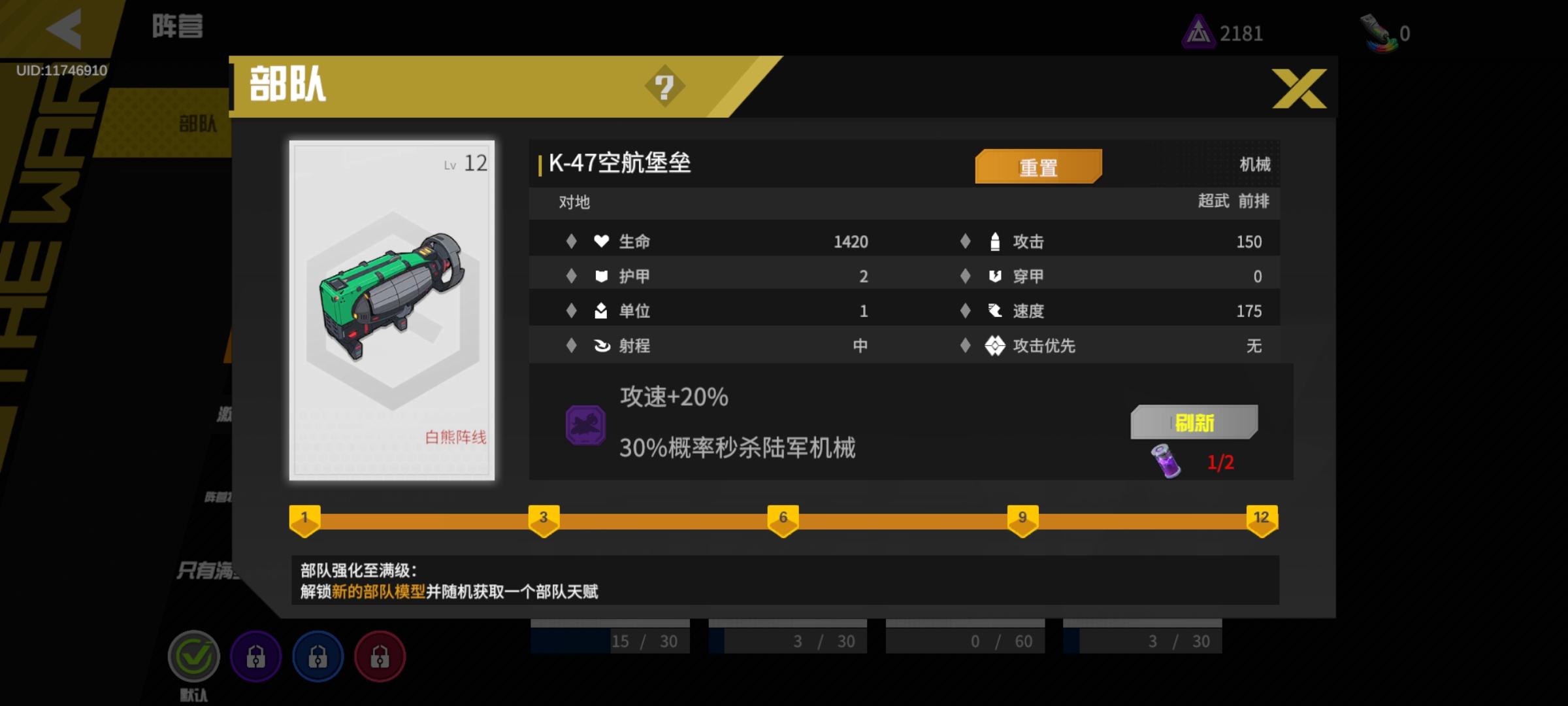 第一次万战。这把也是运气好没人拿王我被随到上王了,在成王之前,我缺末代,克隆,暴雨,怪人,核心。像是万卷和碉堡战术啥的都没有随王后又出来一个战争载具,拿到了克隆,工业阵线,暴雨还是没有。国王自选拿的荣光之路,荣光虽然减攻击,但30的攻击换来每队队重武加3单位和每队超武加一单位还是香的最后感谢大家的努力这局也是获得了胜利,也祝大家都能拿到需要的冥思少单游丝