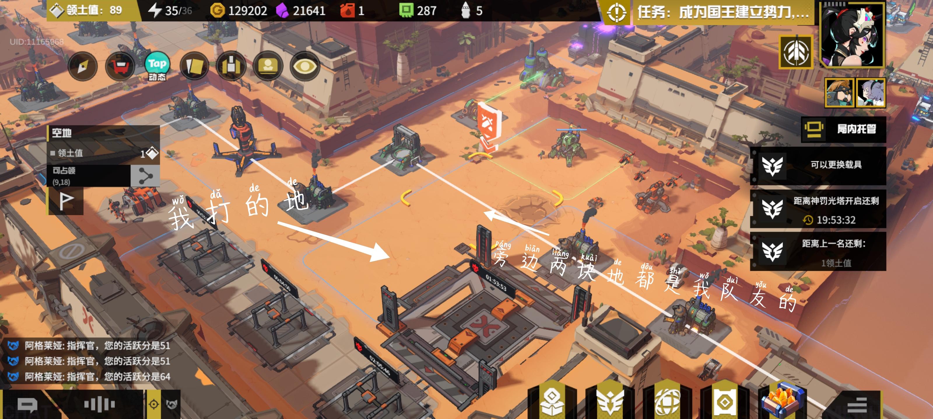 自己打一块地,自己上面那块地是站了副官的,然后再点丢弃,副官会跑到旁边队友的地上面去然后那块地会成为副官的。开始我点丢弃之后中间那块地莫名其妙成为我的了,然后我以为是队友打了又丢弃了,我就又点了丢弃,直到副官跑到旁边把队友没建建筑的地给占了之后才意识到这是一个bug(本意是只想拿一下领土然后把地还给队友)