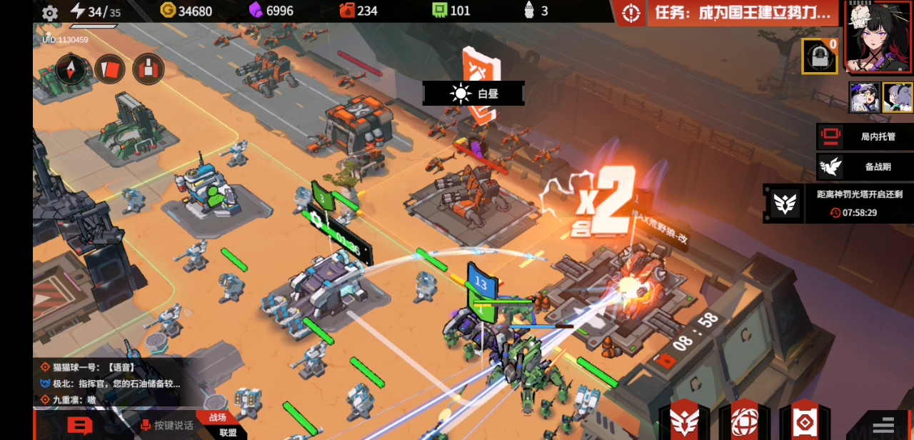 摆烂国王的摆烂局,怎么说嘛,开局没队友,然后原本的国王塔抢不过,机缘巧合之下就拿下了对面的国王塔,然后就开始摆烂(此生属于我的骑士塔已经被对面国王打下来了)。然后等我重新上线的时候就这样了,那个星欲同学还说加入我显示的是满人了(一人即一方势力,我即是战争),太看得起我了吧