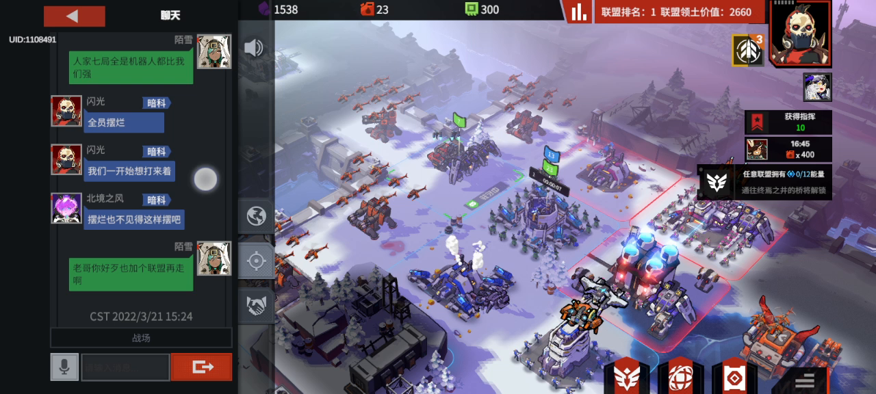 不玩摆烂就算了,家里全拆了就算了,但也不至于接管部队后只有三台直升机几枚动员兵一台盾妹啥的吧!!!这要输出没输出要扛伤扛不住的,求求了下次接管直接接管所有建筑的操作权吧不然这样真没的玩😇😇😇😇😇