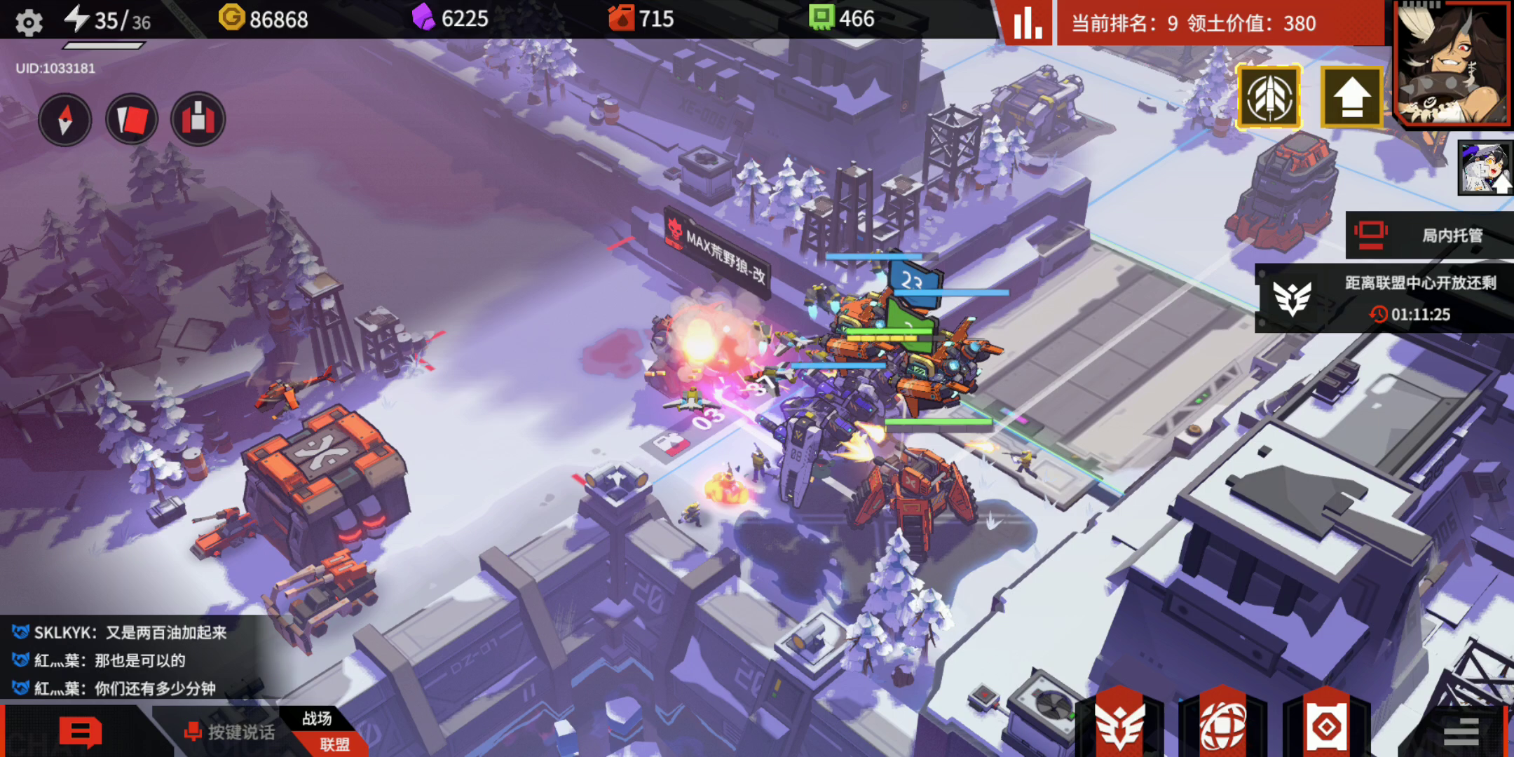 选白熊步兵人多,也快,然后机甲选霞客,这里,兵是五级的不到五级也行,机甲我已经升满了伤害比较高当然没有升的的也行,其它随意