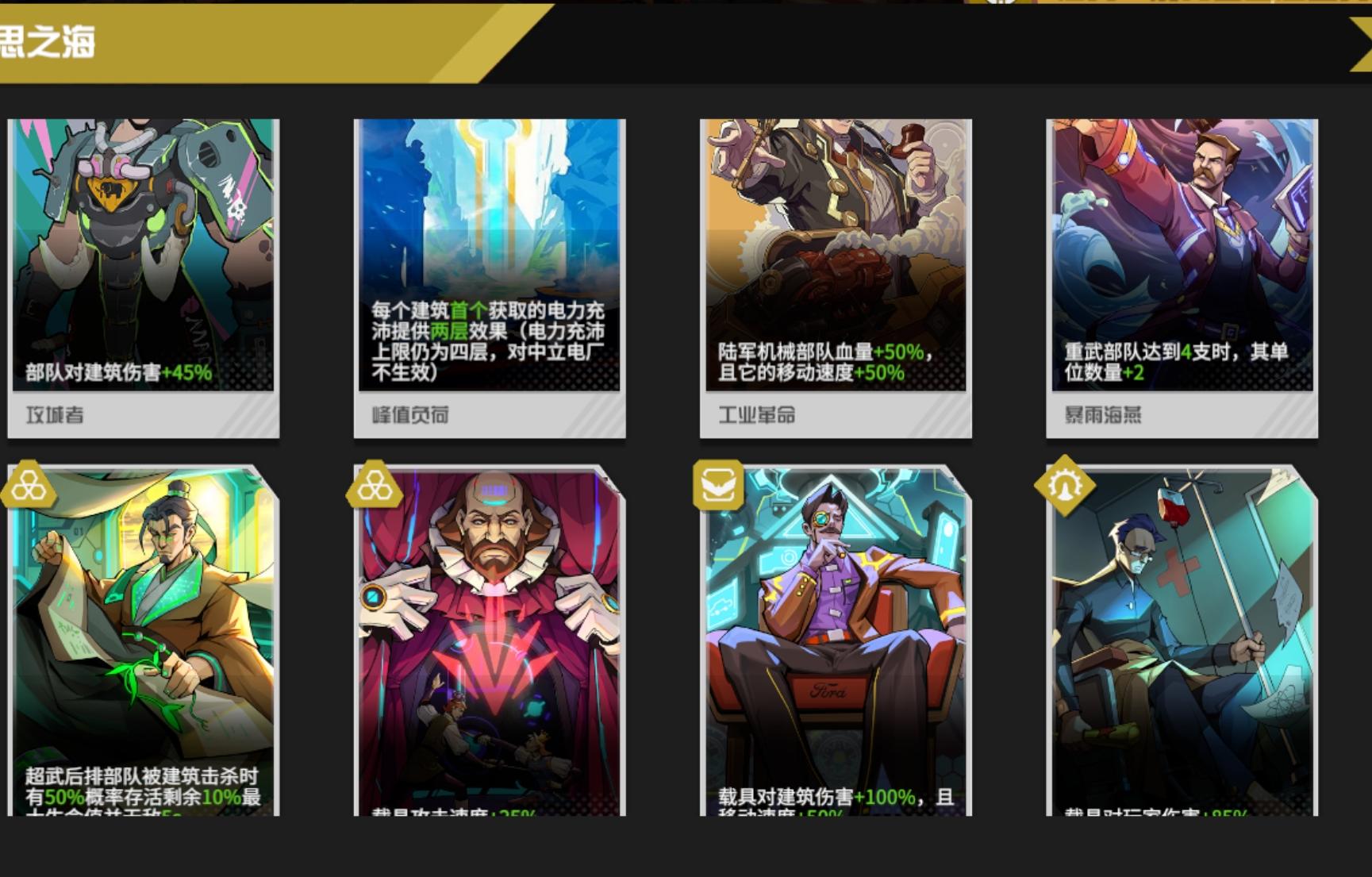 众所周知,游戏中冥思数量繁多,有许多必拿冥思,如终末命运等,但同时也存在大量垃圾冥思和游思,污染游戏卡池。本篇主要是提供加强方向,仅个人观点,欢迎积极讨论。无尽深海当同种重武前排部队的编队等于四时,快速训练的石油消耗减少百分之八十,金币消耗增加百分之八十。这张卡主要雷点在于严苛的生效条件。我认为可以将前排和编队数量要求去掉,以求适配更多的兵种。(其实我觉得还是弱了,金币消耗太多了)修改后