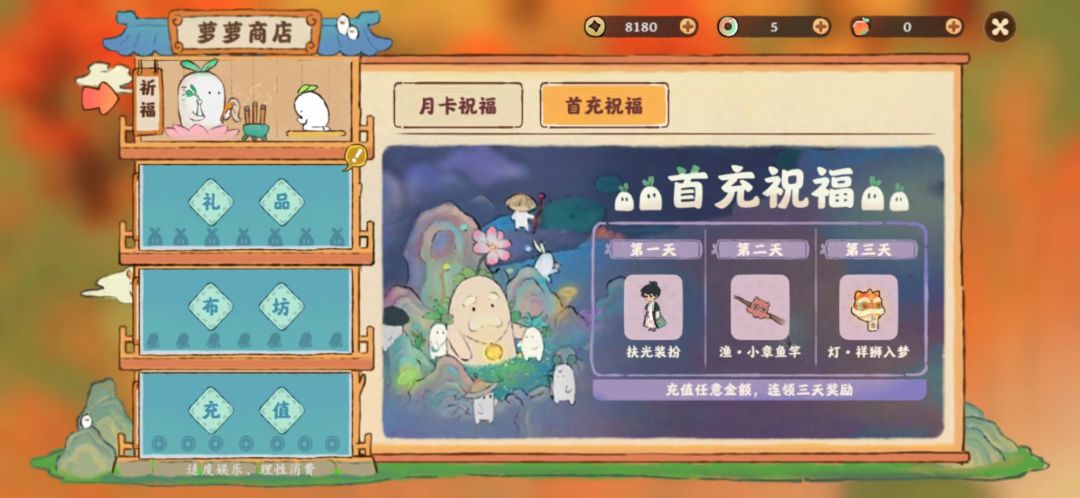 本人玩了12天,氪了月卡,等级26,厨9级,曲等级5级,一天在线6小时打底,因为已经卸载了所以只有几张图,说一些个人观点: 1:无论什么阶段,都卡仓库(你要是氪金大佬直接万元买仓库材料当我没说) 2:钓鱼每天30个鱼饵,出金概率还低的一批,还有可能是什么圆和那个半月,相当恶心。 3:抽卡,建筑前期没有氪的时候还不是保底,氪了月卡之后每次几乎都是无限接近保底,也可能是我太敏感了。 4:等级升级经验加