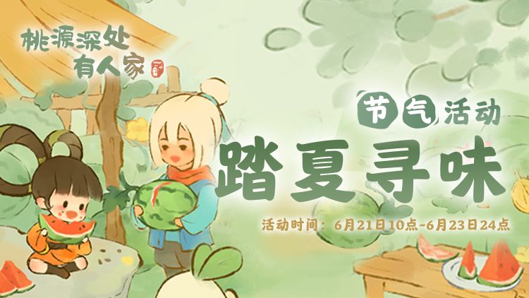 树阴满地日当午,梦觉流莺时一声。 噔噔,今日萝带来了夏至节气活动预告哟! 活动名称:踏夏寻味 活动时间:6月21日10:00-6月23日24:00 在活动期间内,山民可以种植特殊农作物「莼菜」和制作特殊节气菜肴「莼菜豆腐汤」「莼菜银鱼羹」,提交节气订单可以额外获得玥琅。萝卜已经在萝萝山准备好节气限定建筑,大家记得参与活动获取玥琅,不要错过节气限定建筑兑换萝! 萝卜小提示:夏至节气是盛夏的起点,不