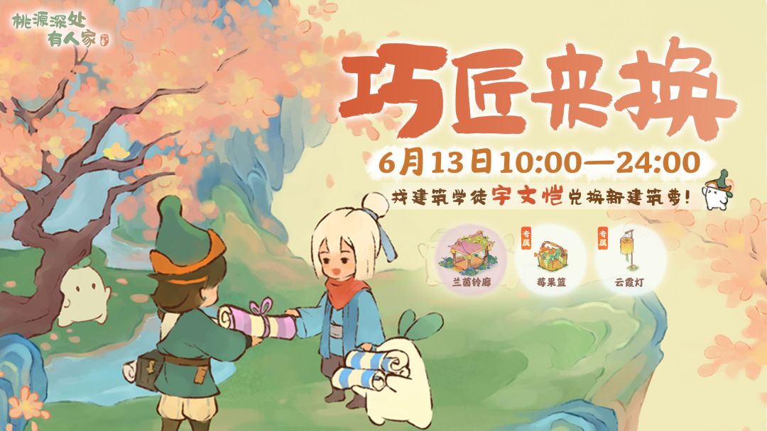 各位萝萝山山民好呀,新一期「巧匠来换」活动带着新建筑来萝! 在6月13日10:00-24:00期间,山民可找寻宇文恺消耗已拥有的丙等建筑来兑换活动建筑。 不仅可兑换新的乙等建筑「兰茵铃廊」以及活动专属丙等建筑「莓果篮」、「云霞灯」。还能兑换乙等建筑「金露蕊菊」以及丙等建筑「红香栌」、「堆石生蔓」、「竹编篮」。 感兴趣的山民不要错过萝!