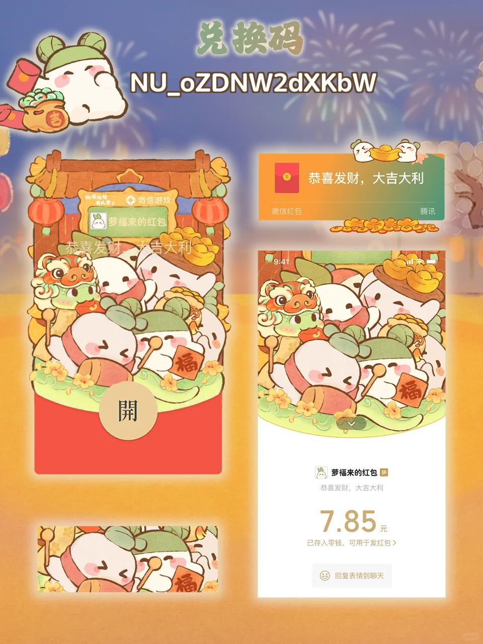 把酒笙歌辞旧年,星灿烟火醉人间。 2025 新岁启,祥临万户!愿山民情长守,伴萝跨千山。 萝萝山开年礼:建筑卷轴*2、装扮卷轴*2、玥琅*388、一萝戏红 *1 输入口令码【瑞象迎新感恩相伴】即可领取游戏礼包! 领取方式:在游戏内点击【头像】-【设置】-【政策】-【兑换码】输入口令码兑换礼包。 2025,携手敲响这份开年福袋萝! #桃源深处有人家