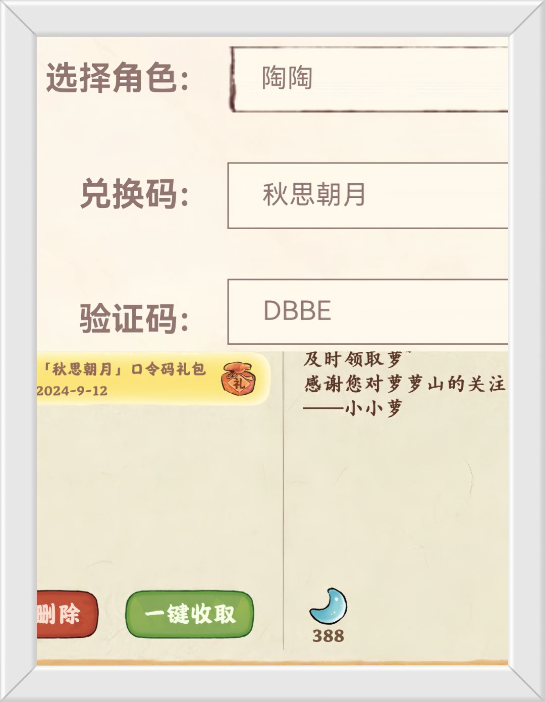 1:兑换码:秋思朝月 2:兑换物品:铜钱*588 + 玥琅*388 + 精致鱼饵*2 #桃源深处有人家 #游戏种草计划