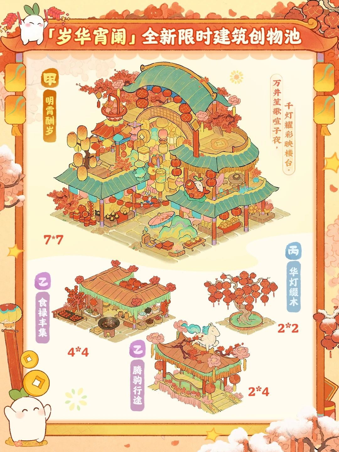 ▶「弈萝思棋」限时UP建筑创物池开启 亭上吟风花浮香,弈萝对棋树阴斜。 本期限时UP建筑创物池将会上架甲等建筑「弈楸棋亭」 绿树荫浓,小亭闲敲,翻转萌主,与棋友一兽降一兽,解锁专享装饰和专属头像框! 抓住秋天的尾巴,把晴空谱进相弈之乐吧! 此外还有乙等建筑「闭云花遮」、丙等建筑「攀花台」、「狮王凳」上架。 山民们可以在「弈萝思棋」限时创物池中获得以上建筑,装扮自己的萝萝山。 (「弈萝思棋」创物池将