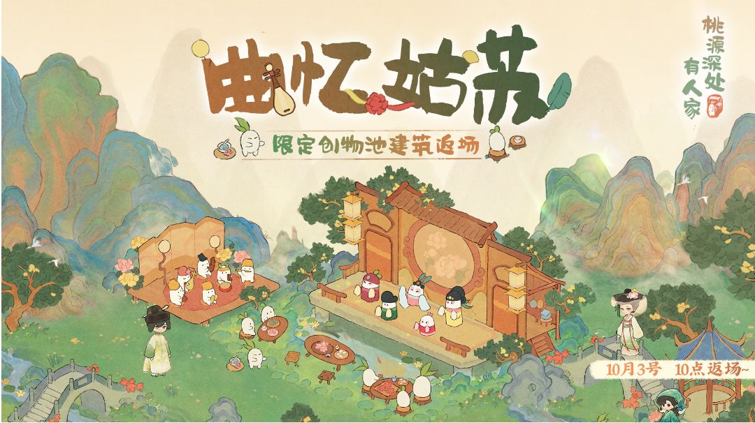 姑苏台上吴侬语,琵琶水袖一浮生。 限时UP建筑创物池「曲忆姑苏」惊喜返场! 山民们可以在此创物池中获取甲等建筑「苏萝戏台」,聆听古色古香的昆曲和评弹。 该创物池中乙等建筑「牡丹亭」、「枫桥」,丙等建筑「月木樨」、「园林石」的获取概率会提升。 山民们可以在「曲忆姑苏」限时创物池中获得以上建筑,装扮一个充满江南雅韵的萝萝山! (「曲忆姑苏」创物池将会在10月19日10点正式开启)#桃源深处有人家