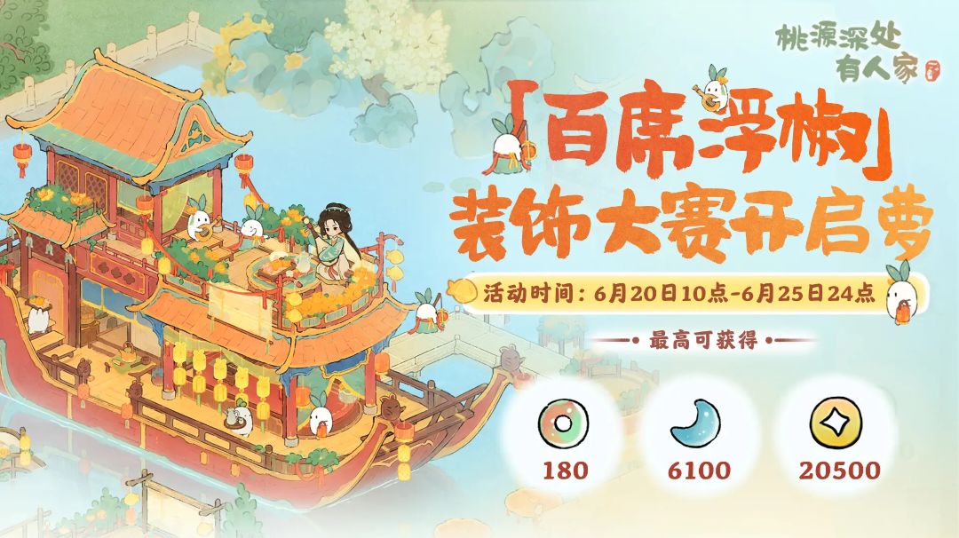 红墙映日,金瓦流霞,沉淀千年的宫阙画卷铺展于萝萝山 ——「百席浮椒」装饰大赛正式开启! 本次大赛以故宫建筑为灵感之源,邀你用匠心妙笔:朱墙飞檐叠映粼粼金波,画舫雕栏漫卷笙歌入韵,将宫阙深处的庄严与诗意,悉数铺展在萝萝山的山水之间! 活动名称:「百席浮椒」装饰大赛 活动时间:2025年6月20日10点-2025年6月25日24点 活动奖励:最高可获得玎当*180、玥琅*6100、铜钱*20500 #