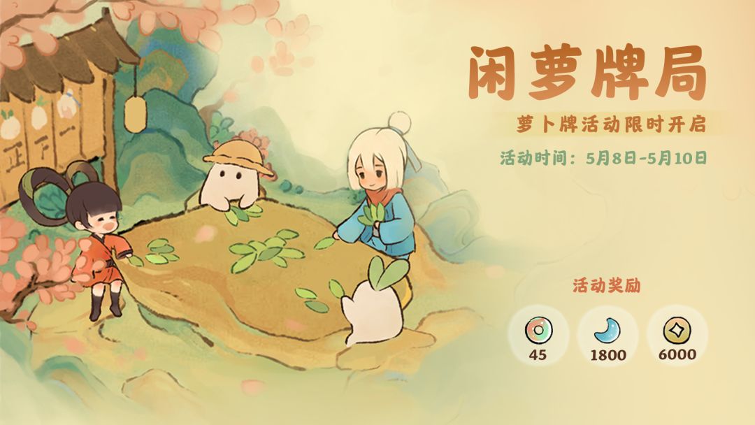 黄鹂啄紫椹,五月鸣桑枝。 各位萝萝山山民好呀,萝萝山新一期的「闲萝牌局」限时活动现已开启,活动时间为5月8日10点-5月10日24点。 活动期间山民可前往萝卜牌屋或活动页面开启萝卜牌对局,对局完成后可获取积分,达到一定积分可领取对应奖励哦!#桃源深处有人家
