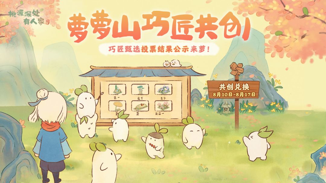 [表情_开心]心向桃源,共筑新篇 [表情_酷]各位萝萝山的山民好呀!《萝萝山巧匠共创》的「巧匠甄选」投票公示来萝! 经过山民为期两周的投票,小花统计了本次活动中得票数最高的8件作品,非常感谢各位山民在本次活动踊跃参与♪(・ω・)ノ 小花会在下方放出本次活动的兑换方式,山民们不要错过兑换时间萝!那么来随小花看看都有哪些作品深受大家喜爱吧! ⭐【共创兑换】活动说明 ① 活动时间:8月10日10:00-