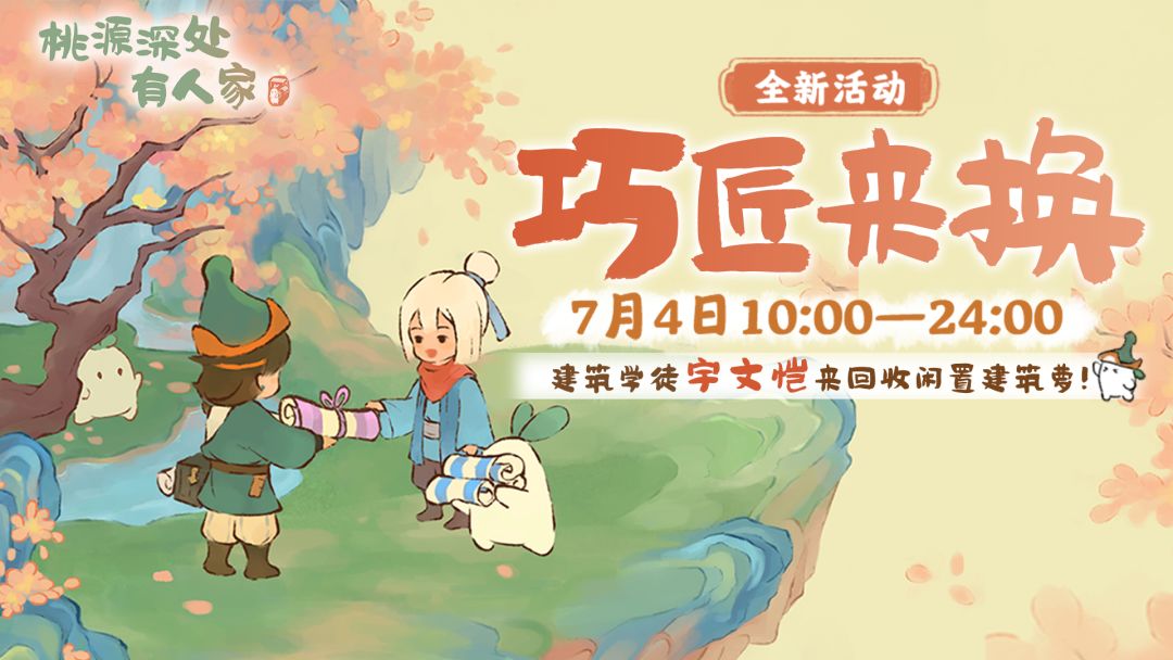 萝萝山的山民们下午好呀! 大家期待已久的建筑回收活动将在明日(7月4日)限时开启萝! 建筑学徒「宇文恺」将会在7月4日10:00-24:00期间于萝萝山停留,进行建筑回收! 为了大家在参与「巧匠来换」活动时有更好的体验,萝卜整理了一份「巧匠来换」活动相关说明,方便大家查阅。 感兴趣的山民千万不要错过萝!#桃源深处有人家