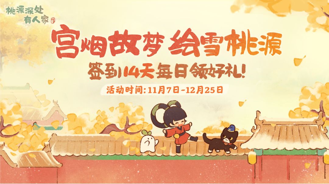 三十六宫连内苑,千秋万载几度春 各位萝萝山山民好呀!全新版本「宫烟故梦 绘雪桃源」即将于11月21日开启萝! 为了感谢山民们的支持,11月7日10点将开启新版本预热签到活动! 11月7日10点-12月25日24点期间,每日前往签到活动页面进行签到,签到满14天可累计获得建筑卷轴*14、装扮卷轴*14和玎当*280!忘记签到的山民也不用担心,还可以补签哟! 小花提示:本次签到活动共持续49天,山民等