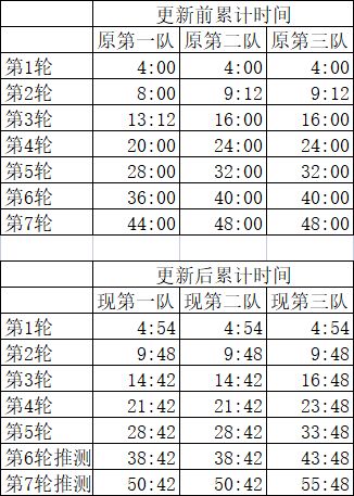 编辑一下,加入更新前的计算公式,统一公式写法方便对比。 外出时间=240分钟×疲劳系数×(1-月卡0.1)×(1-舒适度-身份)×(1-飞快一点0.5) 疲劳系数见图1。 举例更新后:10%,23%,3%,前8次时间为4:54×0.9×0.74=3:15:50;第9次时间是4:39:43;第15次时间是6:39:36;第?次时间是7:59:31。 另外发送总次数低的时候还会有额外的速度加成。 尚不