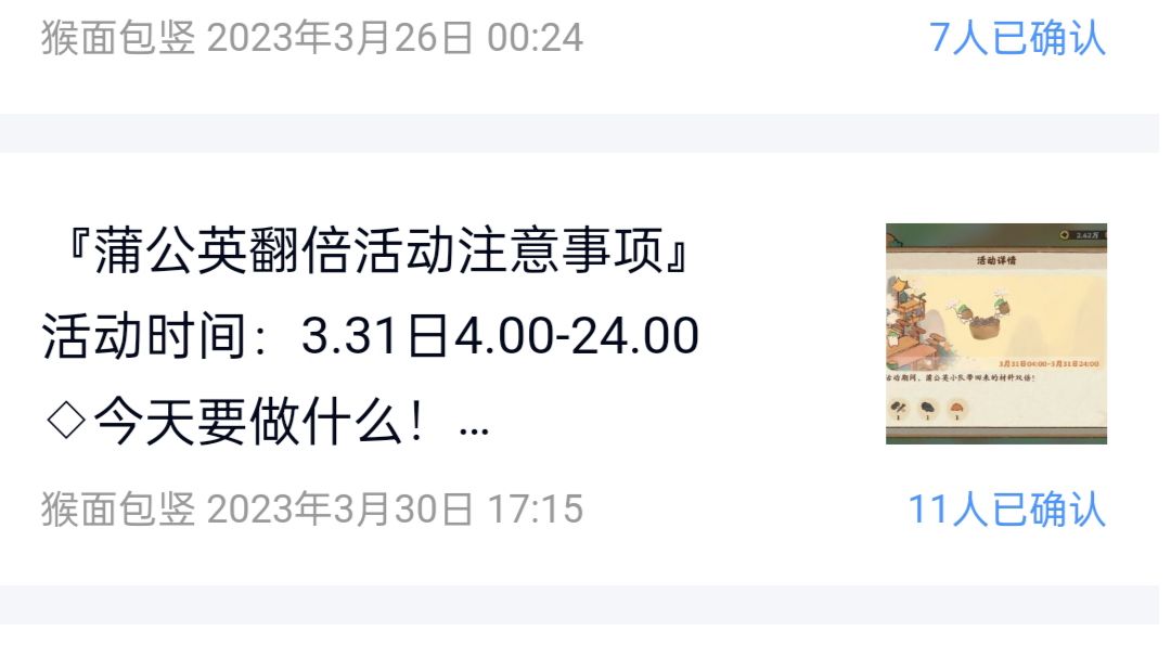 『蒲公英翻倍活动注意事项』 活动时间:3.31日4.00-24.00 ◇今天要做什么! 1.备好五色土开出来的buff材料! 2.今天先不做订单,多囤一些半成品! ①白天:生产1.30小时以内的半成品! ②晚上:睡觉前全部拉满耗时最长的半成品! (注意控制时长,别超过睡觉时间,避免第二天起来超长时间半成品堵塞!) ◇怎么获得五色土? 1.月卡每天少量 2.首次在主线达成任意结局获得10个五色土 3